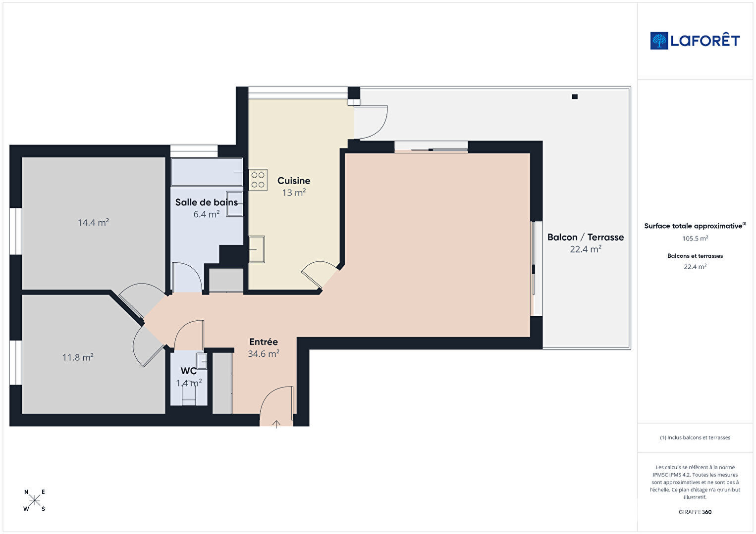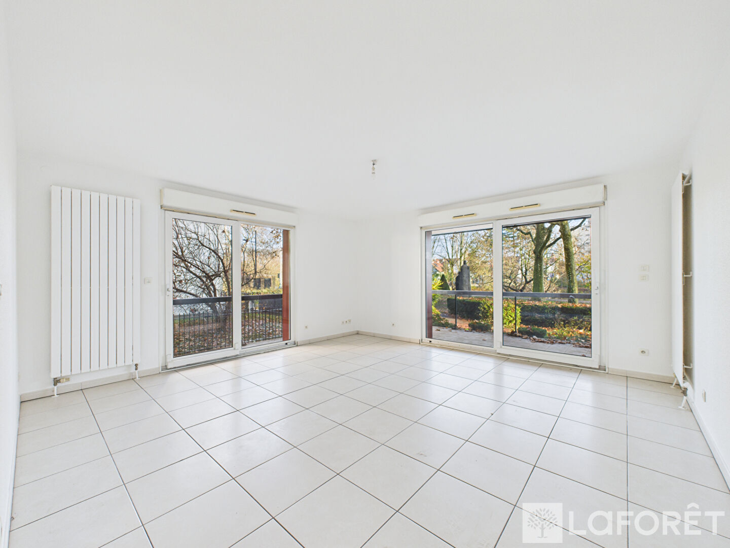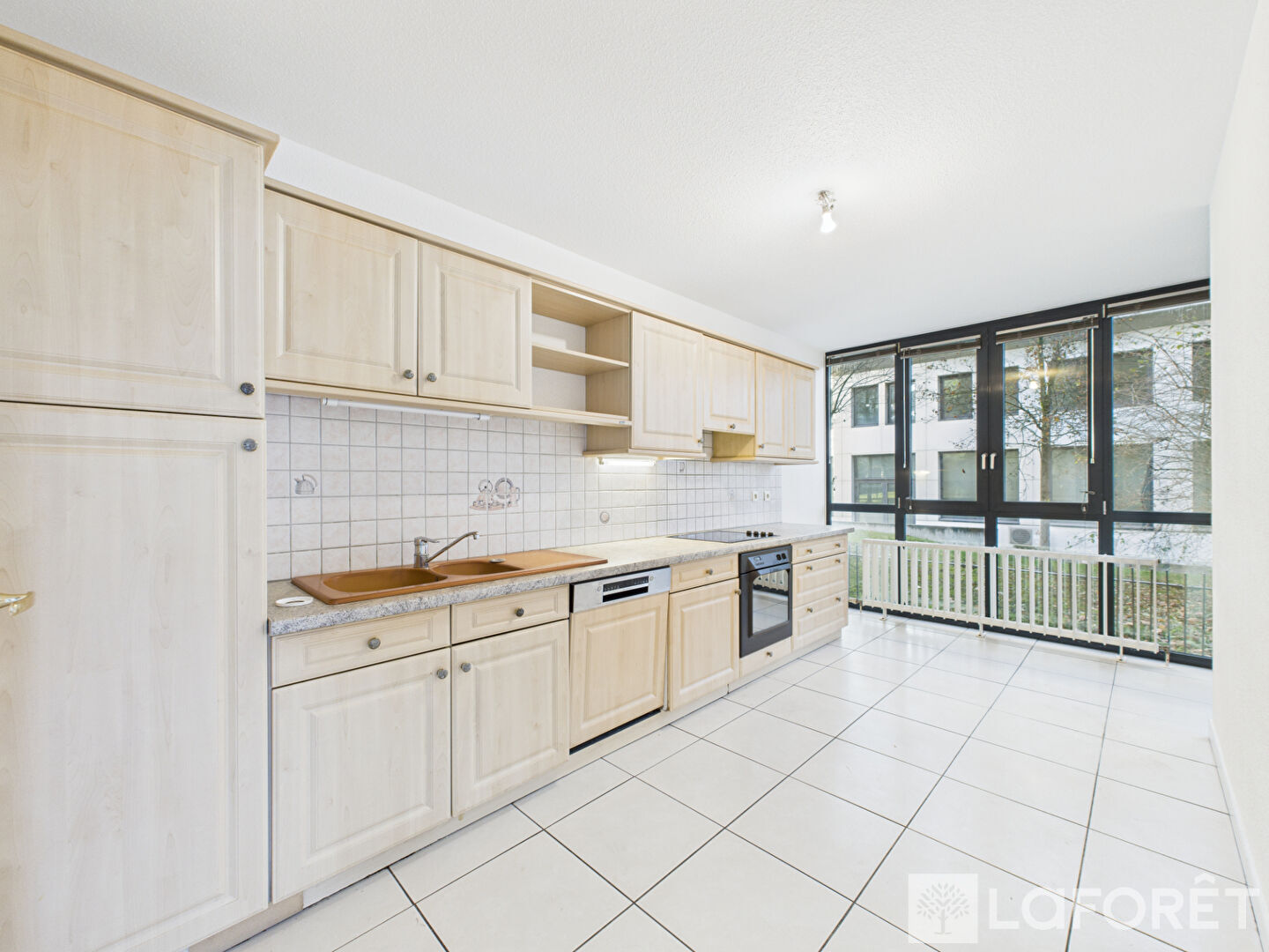 Au rez-de-chaussée, dans une résidence située à proximité immédiate des stations de tram et de bus, appartement 4 pièces composé d'une entrée avec placard, d'une cuisine équipée et une pièce de vie donnant sur une grande terrasse, deux chambres, une salle de bain, d'un wc individuel.