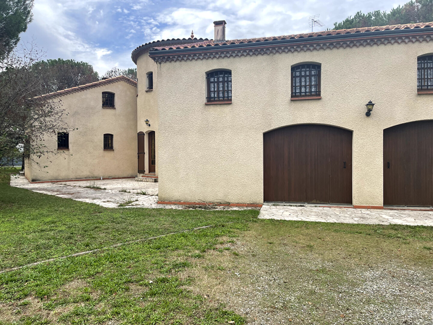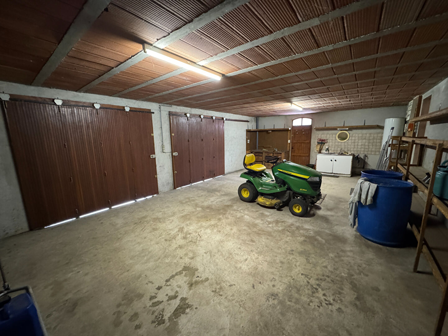 Un garage double de 55 m2, un portail électrique et une grande allée éclairée complètent le bien.