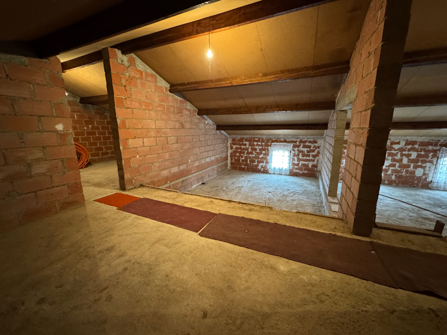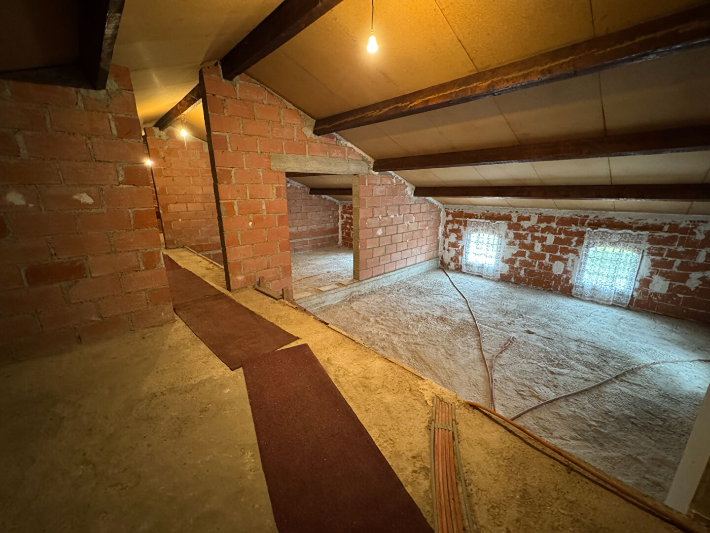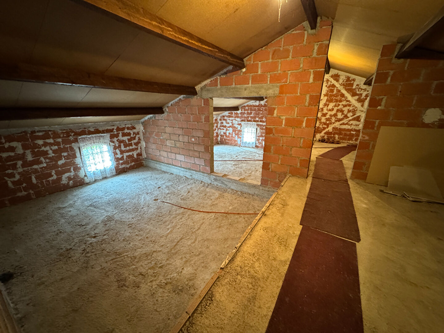 A l'étage, Une chambre de 17 m2, SDB 8 m2, WC et combles aménageables de 130 m2.