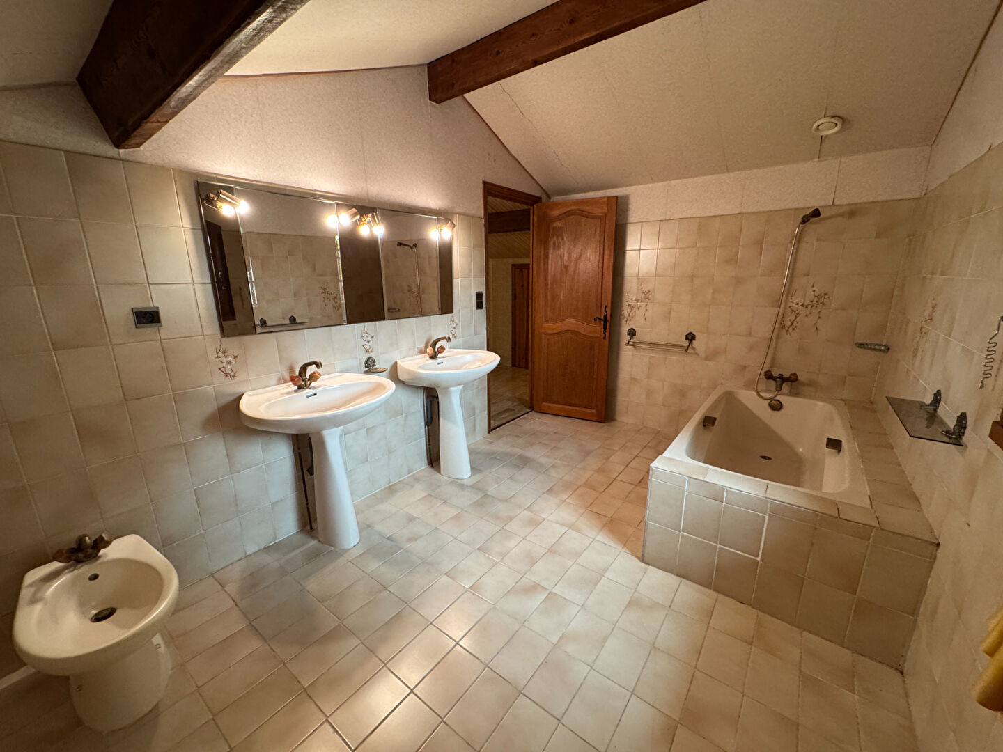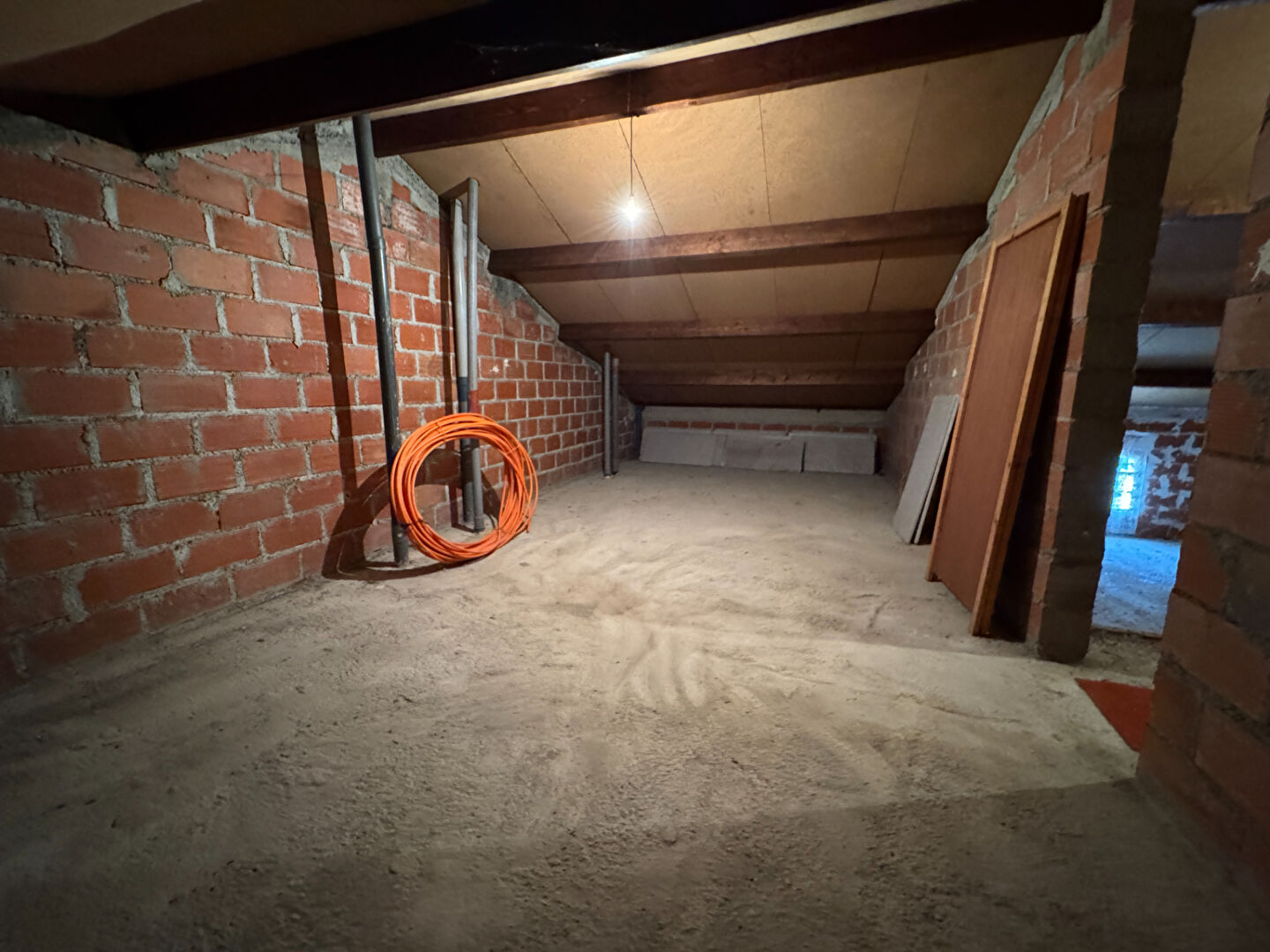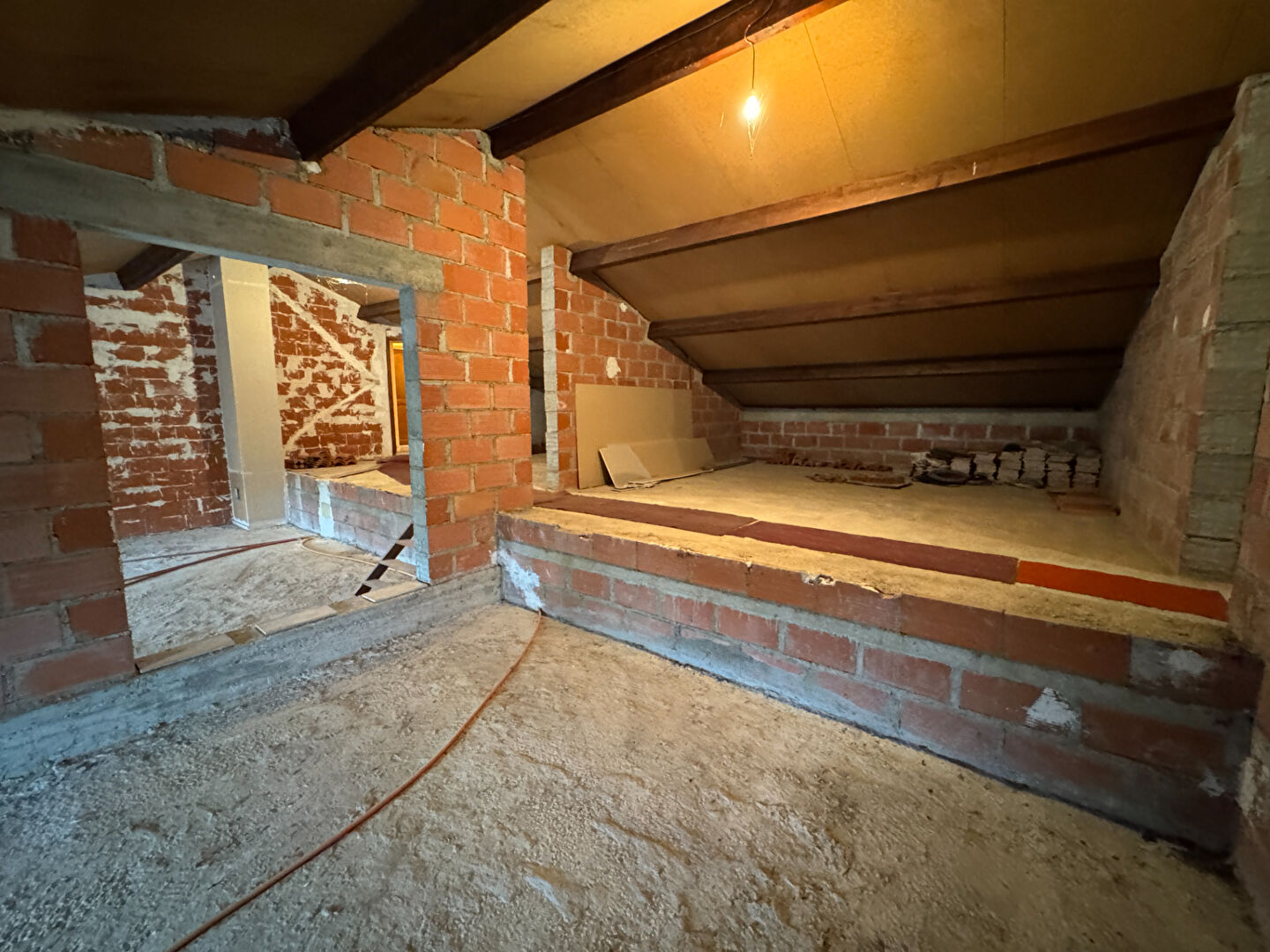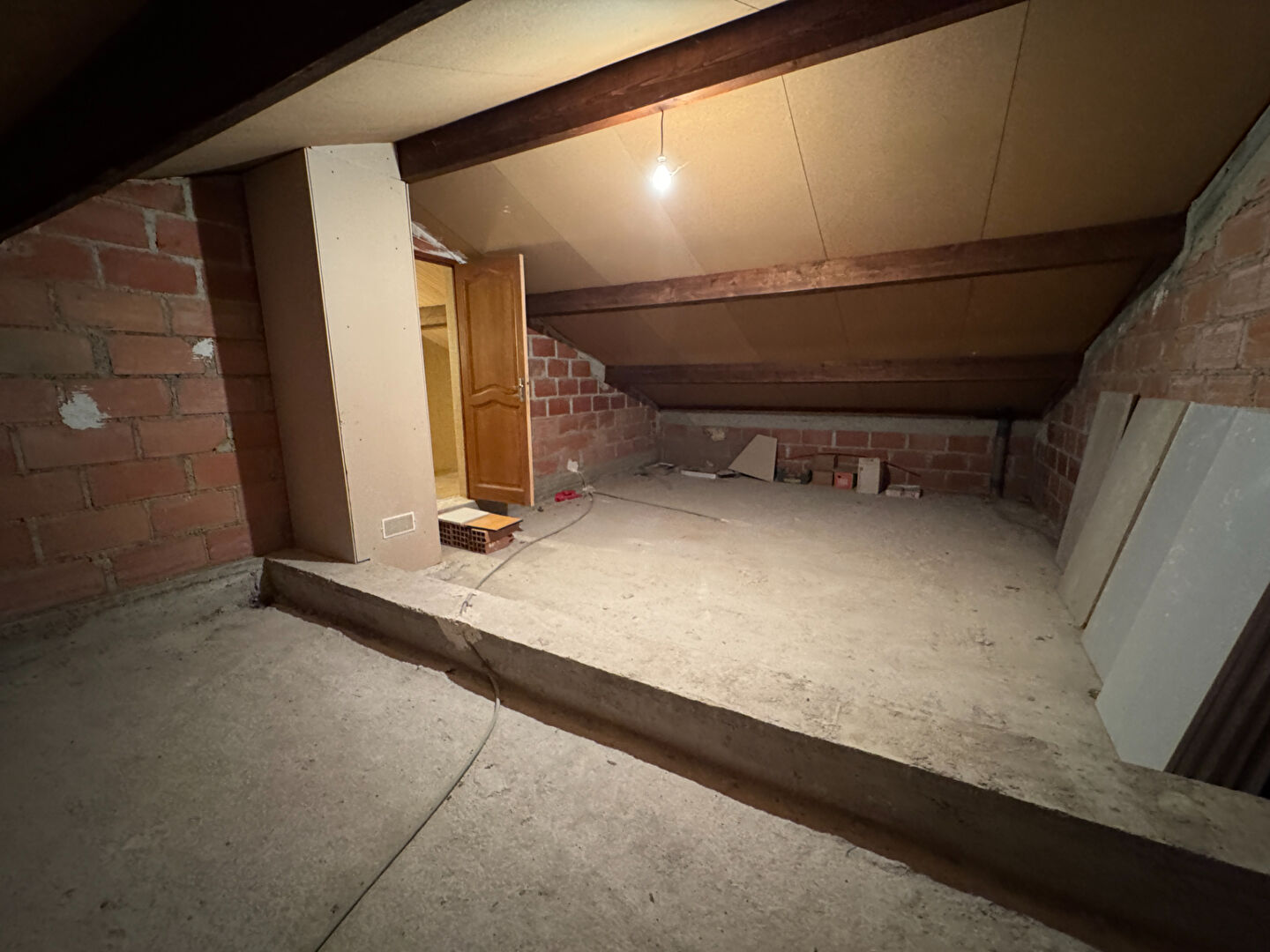 A l'étage, Une chambre de 17 m2, SDB 8 m2, WC et combles aménageables de 130 m2.