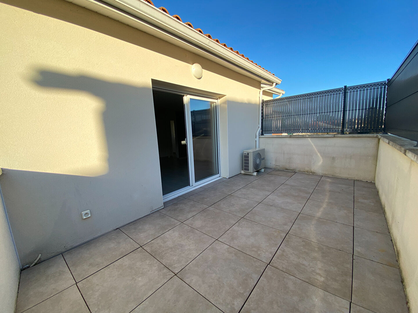 Hall d'entrée, séjour avec cuisine U.S aménagée ouvert sur une terrasse de 15m2. 2 chambres spacieuses avec chacune un placard. Salle d'eau et WC séparés. Une place de parking privative extérieur.