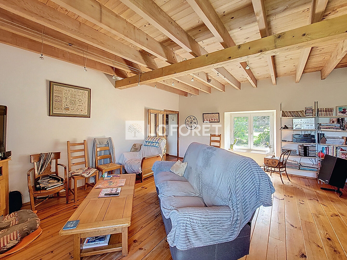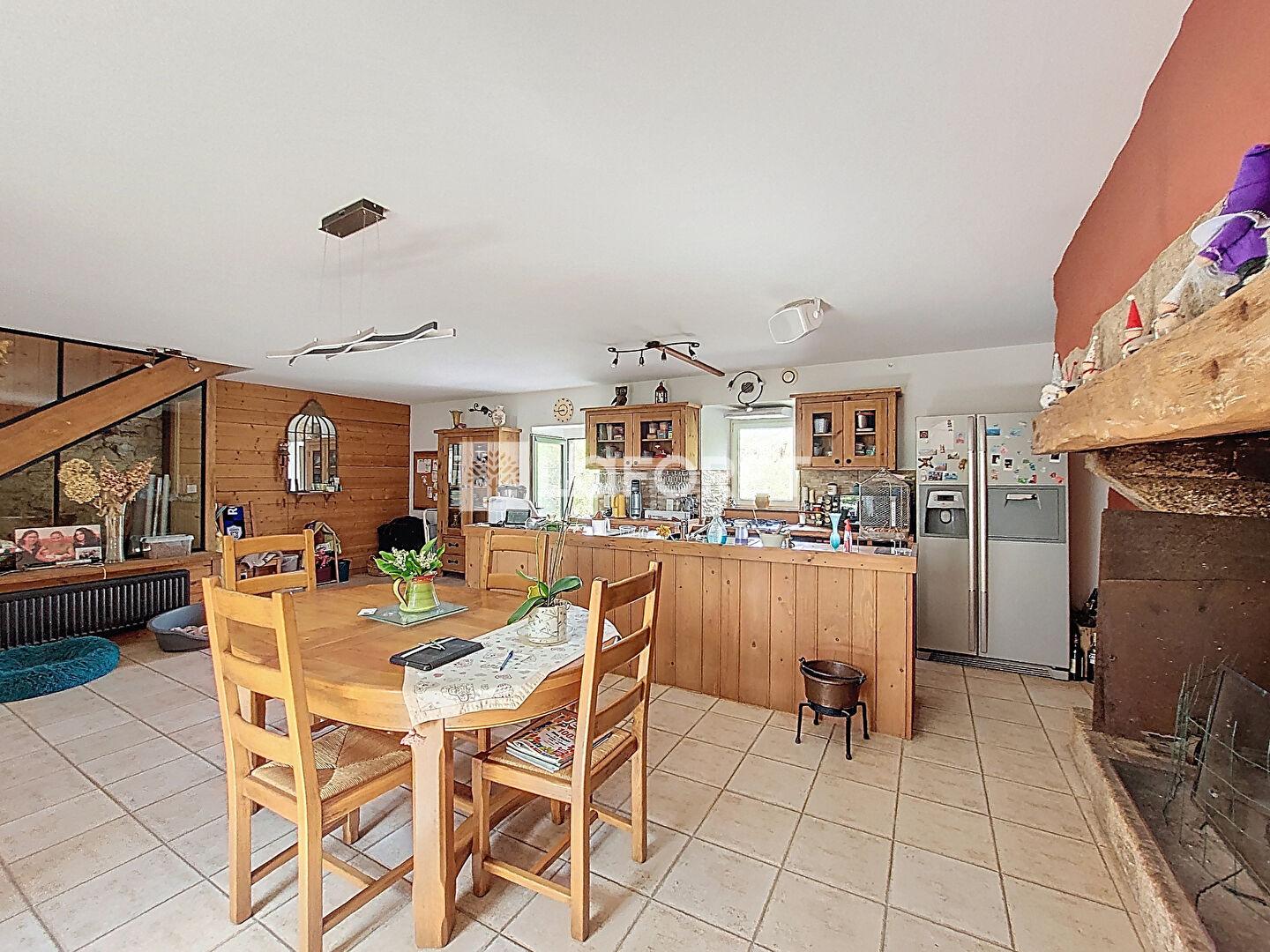Le rez-de-chaussée se compose d'une spacieuse salle à manger avec cuisine aménagée et équipée, ouverte sur la terrasse, d'un salon chaleureux et traversant, ainsi que d'une suite parentale avec chambre, salle de bains (douche) et WC.