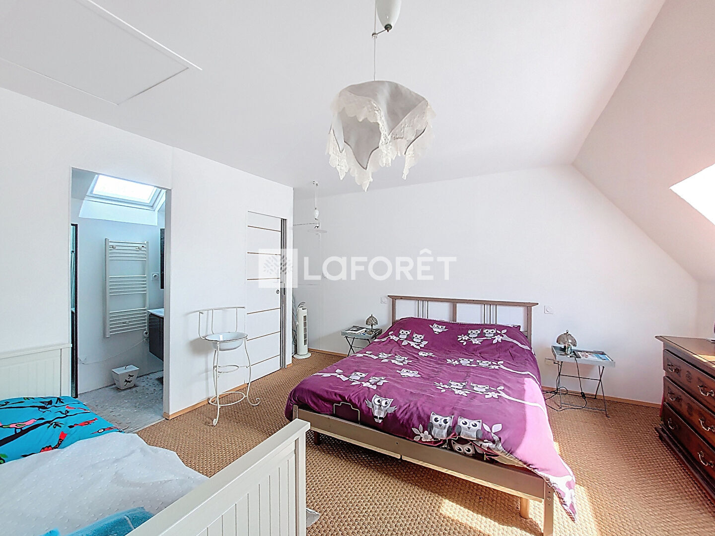 À l'étage, un palier modulable selon vos envies (bureau, salle de jeux?) dessert trois chambres, une seconde suite parentale avec salle d'eau et WC indépendant, ainsi qu'une salle d'eau supplémentaire avec WC.