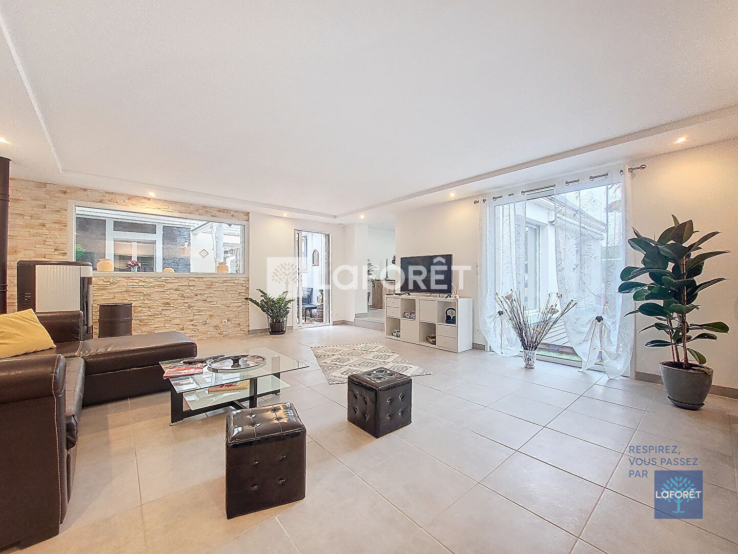 Dès l'entrée avec placard intégré, vous accédez à un vaste espace de vie lumineux. La cuisine ouverte, aménagée et équipée avec un îlot central, se prolonge sur une salle à manger spacieuse de 25 m². Le salon de plus de 36 m², agrémenté d'un poêle à granulés, s'ouvre sur un patio couvert comprenant un jacuzzi et une douche, pour des moments de détente en toute saison. Une suite parentale avec salle de bains privative (baignoire balnéo et douche), dressing et WC indépendant complète ce niveau.