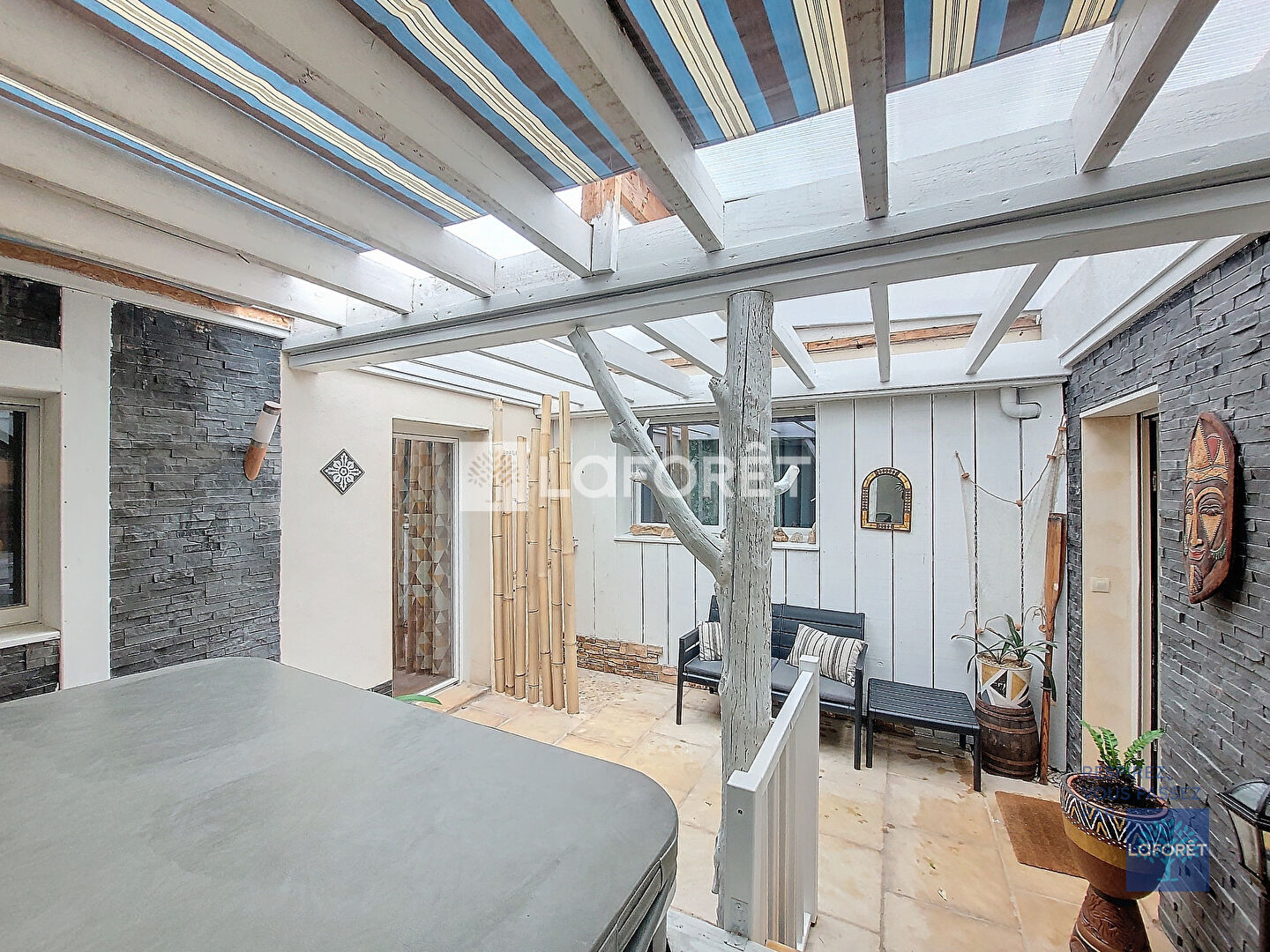 À 300 mètres à pied de la plage et au calme d'une impasse, cette charmante maison des années 60 de 140 m², entièrement rénovée en 2014, vous séduira par ses espaces généreux et ses prestations de qualité.