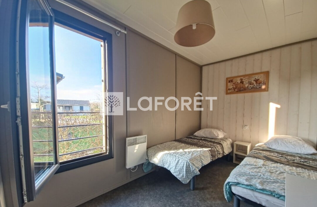 Un chalet de 56 m² avec un terrain de plus de 370 m², il se compose d'une pièce de vie avec cuisine équipée et aménagée de 24m², une salle d'eau, wc séparé, 3 chambres lumineuses et d'un cellier. Les charges sont de 77 euros pas mois, idéal pour y vivre à l'année ou bien du secondaire et ou faire du locatif.