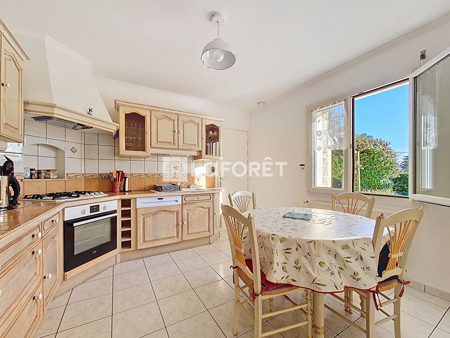 Au rez-de-chaussée, une entrée dessert un salon-séjour très lumineux de plus de 29 m² équipé d'un insert, créant un espace de vie chaleureux et convivial. La cuisine est séparée, aménagée et équipée. Elle communique avec une spacieuse buanderie de 12 m² disposant d'un accès direct au jardin ainsi qu'une cave, apportant un espace de rangement appréciable.