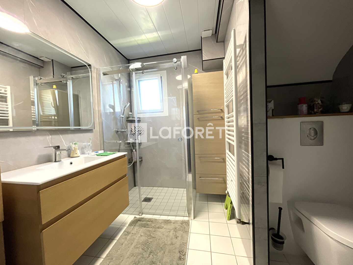 Dès l'entrée, vous serez accueillis par une pièce de vie spacieuse et chaleureuse, agrémentée d'un poêle à bois. La cuisine ouverte, aménagée et équipée, invite à partager des moments conviviaux en famille ou entre amis. Un dégagement avec placard dessert une chambre confortable, une salle d'eau avec WC. Une arrière-cuisine fonctionnelle complète cet espace de vie, avec en plus un grenier situé au-dessus pour plus de rangement.
