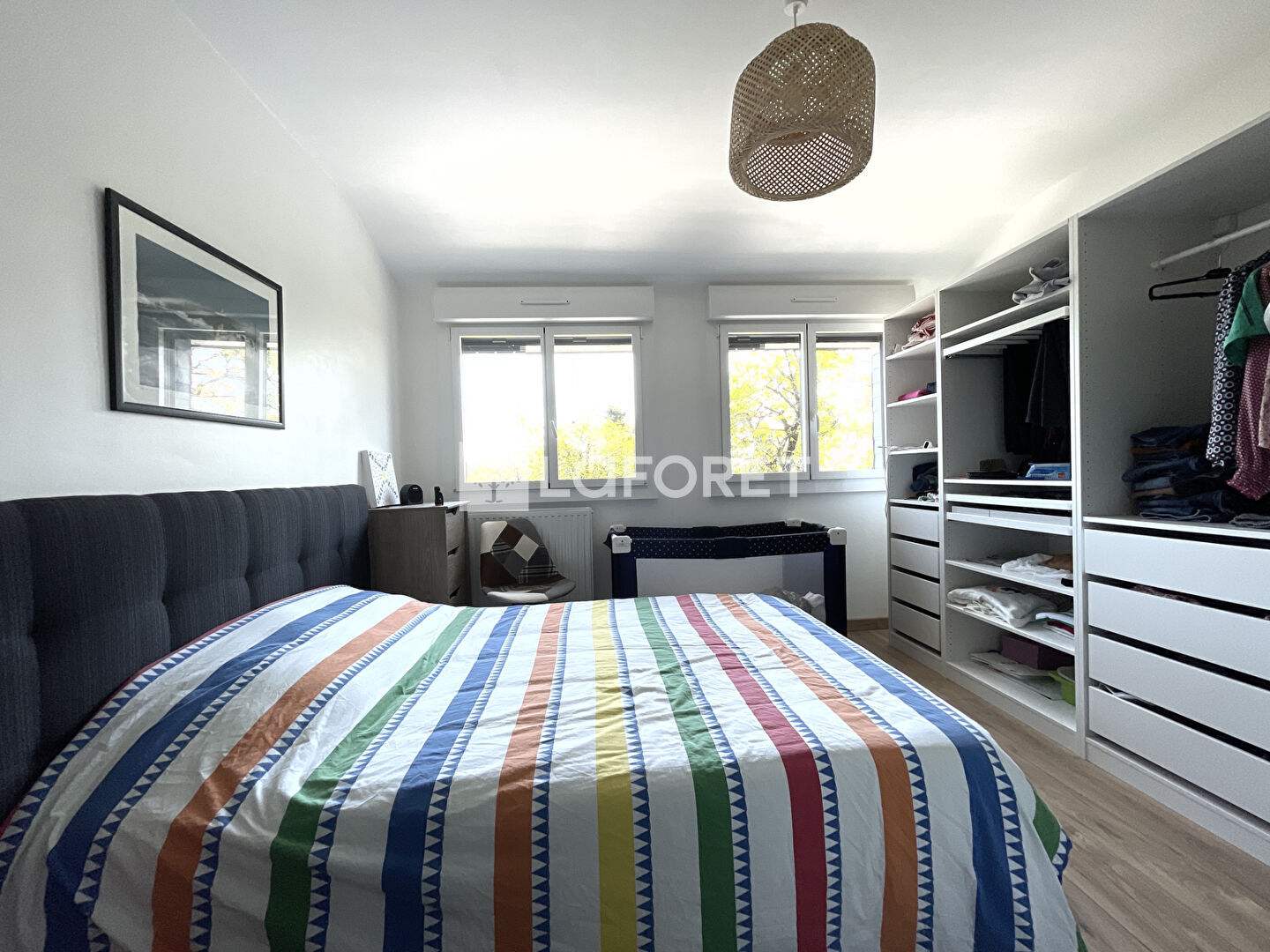 À l'étage : un palier avec placard dessert trois belles chambres, toutes dotées de rangements intégrés, dont une avec un dressing, ainsi qu'un WC avec lavabo.