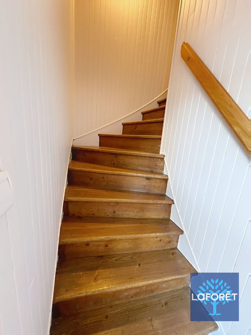 Le bel escalier en chêne massif, vous mènera à l'étage composé d'un séjour lumineux ouvrant sur une terrasse bien exposée plein Sud et un bureau lumineux avec sa double exposition , idéal pour le télétravail.