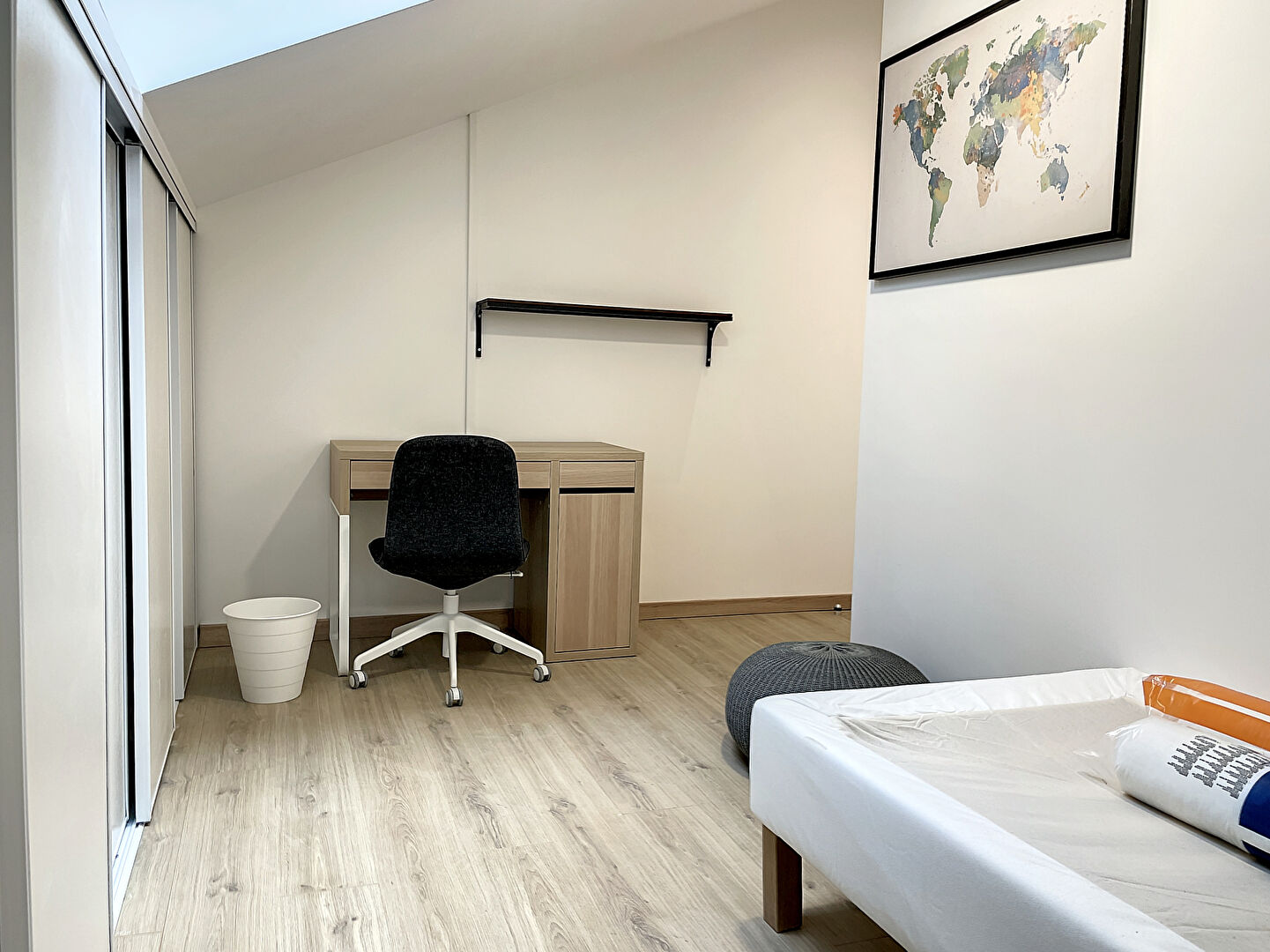 CHAQUE CHAMBRE a un lit DOUBLE, un bureau une armoire spacieuse.