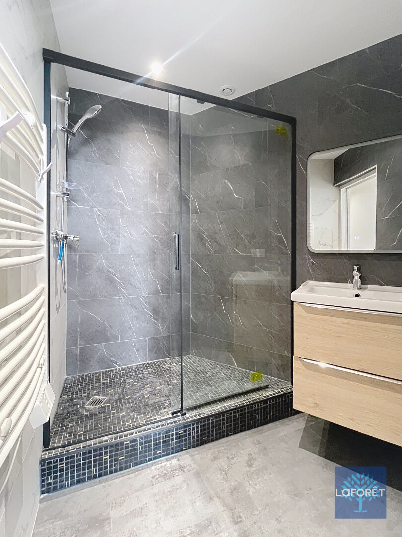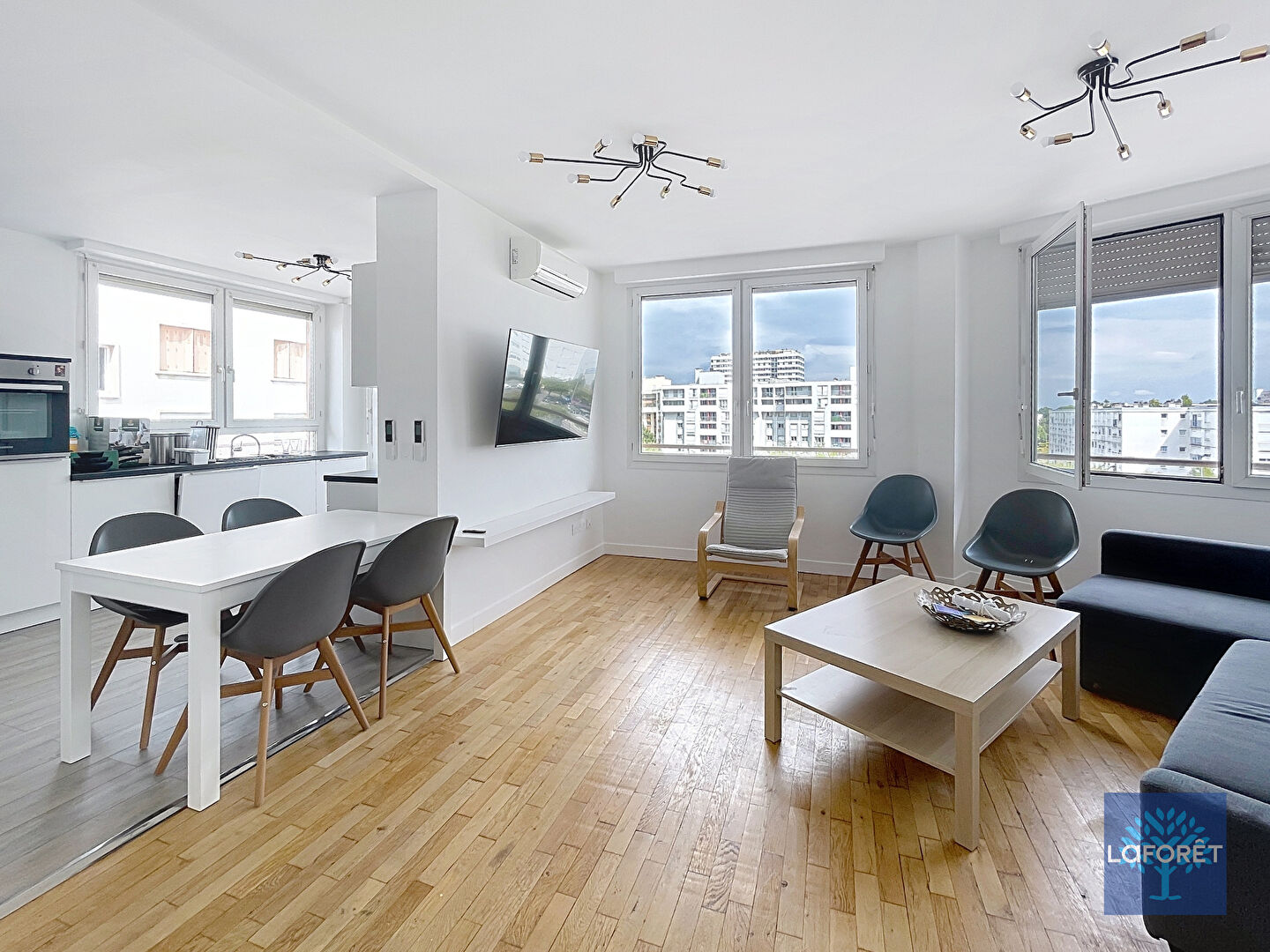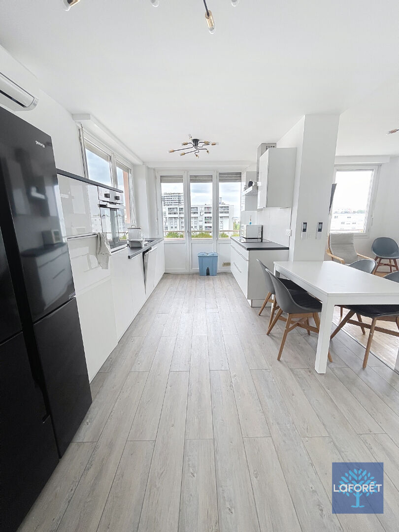 Une belle pièce de vie lumineuse avec cuisine ouverte entièrement équipée et un accès balcon, une grande salle de bains avec douche, baignoire et wc, une seconde salle d'eau et un second wc séparé. Les 4 chambres possèdent chacune leur bureau et leur placard de rangement. L'une d'entre elle possède également son point d'eau avec douche.