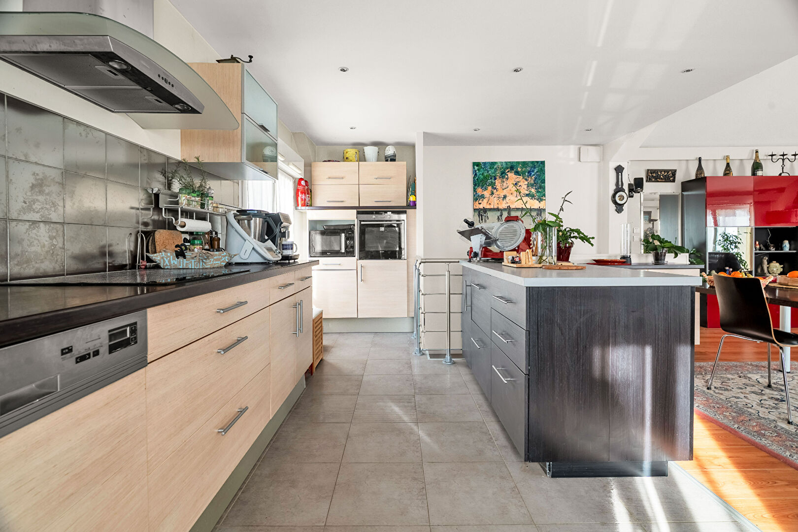 Répartie sur trois niveaux, elle offre un vaste espace de vie d'environs 65,5m² comprenant un salon lumineux ainsi qu'une cuisine entièrement aménagée et équipée, ouverte sur un séjour particulièrement agréable, baigné d'une luminosité naturelle exceptionnelle.
