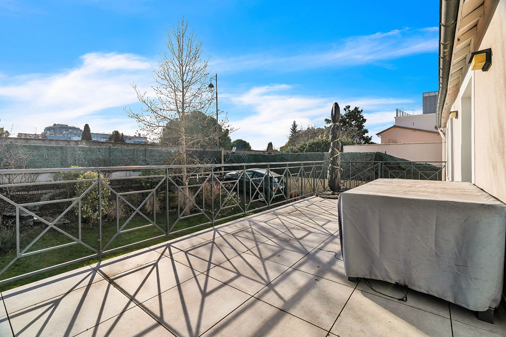 Le séjour et la cuisine s'ouvrent sur une grande terrasse orientée plein sud, idéale pour profiter des beaux jours, avec une vue dégagée sur un terrain d'environ 400m² entièrement aménagé et équipé d'un arrosage automatique.