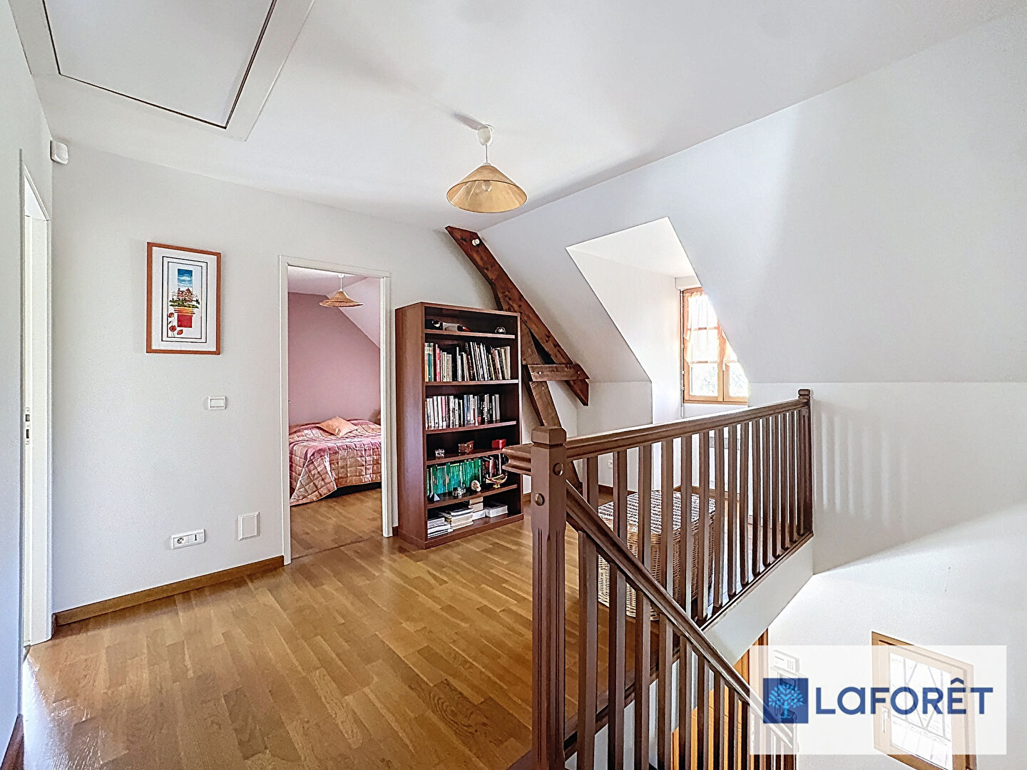À l'étage, un palier dessert quatre belles chambres avec rangements, ainsi qu'une salle de douche et des WC indépendants, parfaits pour accueillir famille et invités.