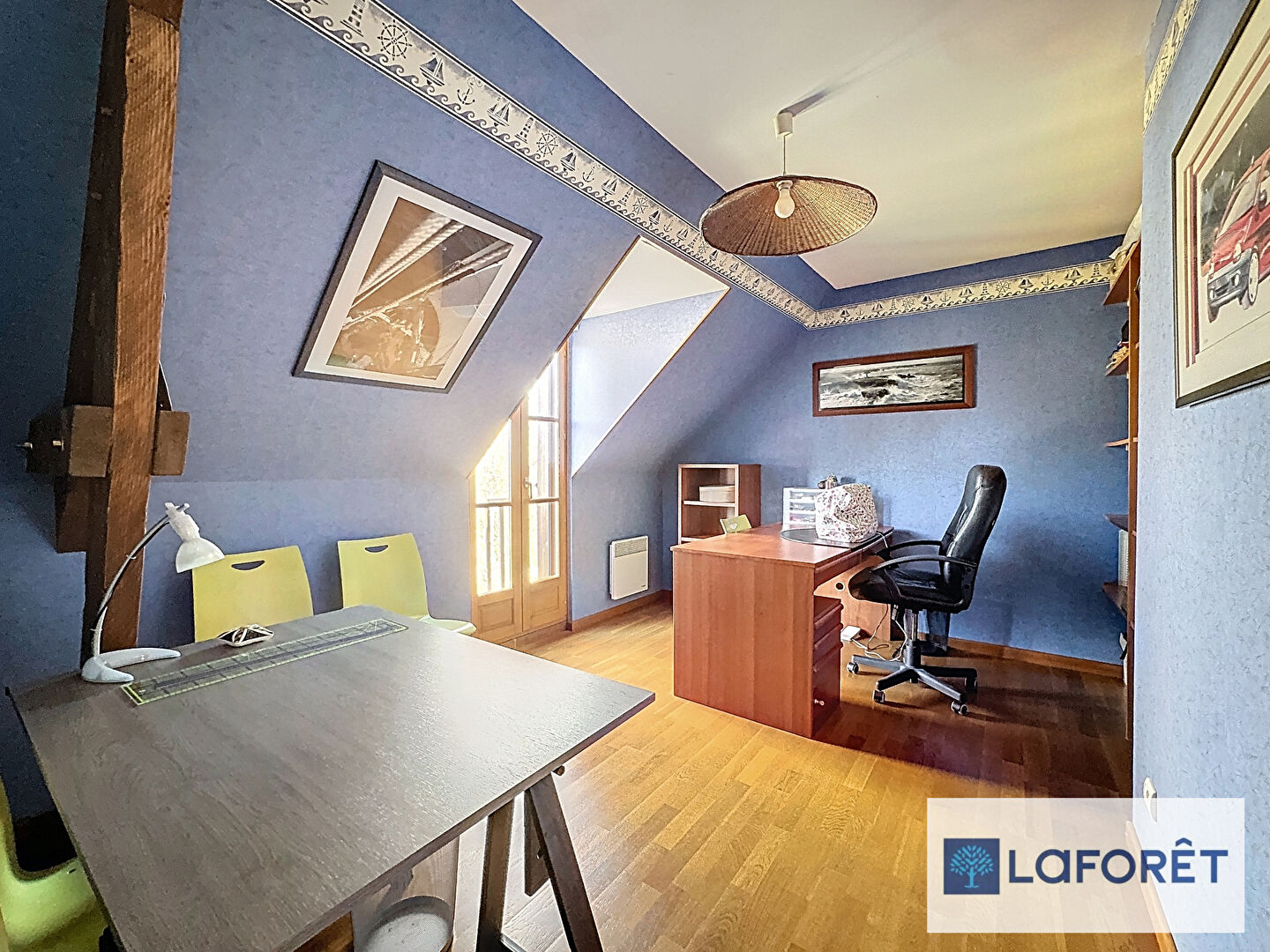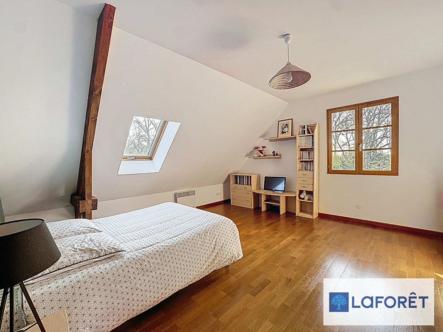 Le rez-de-chaussée propose également une grande chambre avec placards, une salle de bains et des WC indépendants, permettant une vie de plain-pied confortable.