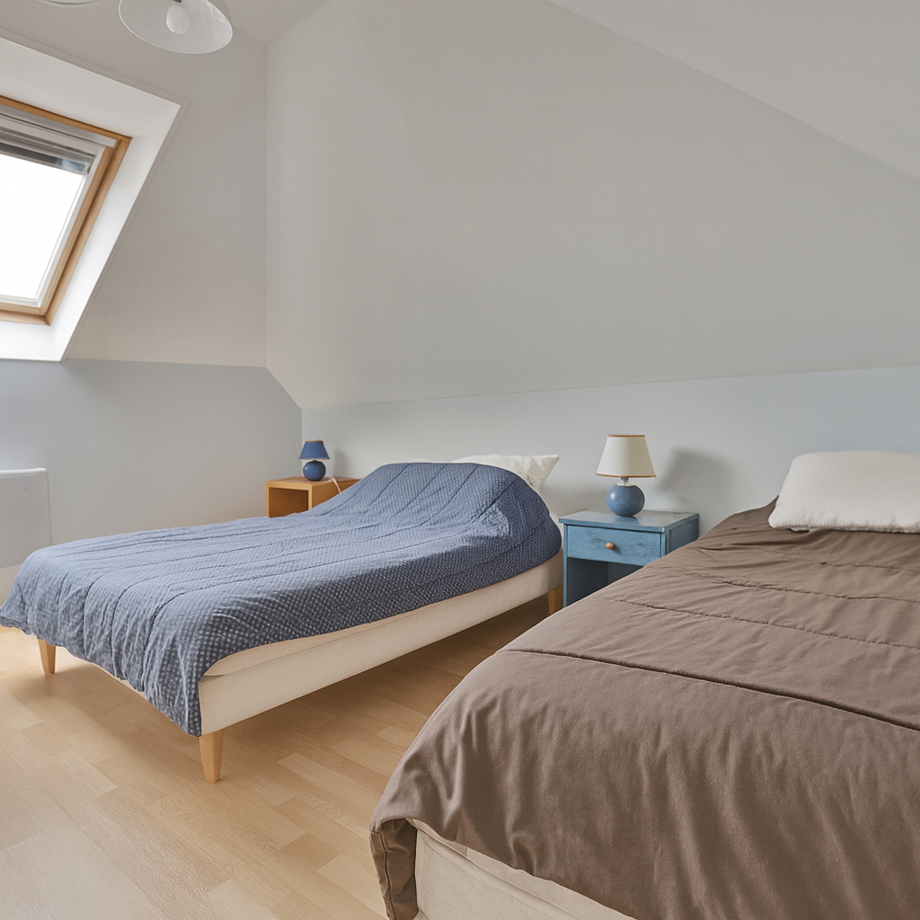 À l'étage, un palier dessert deux chambres supplémentaires, ainsi qu'une seconde salle d'eau avec WC, idéale pour les enfants ou les invités.