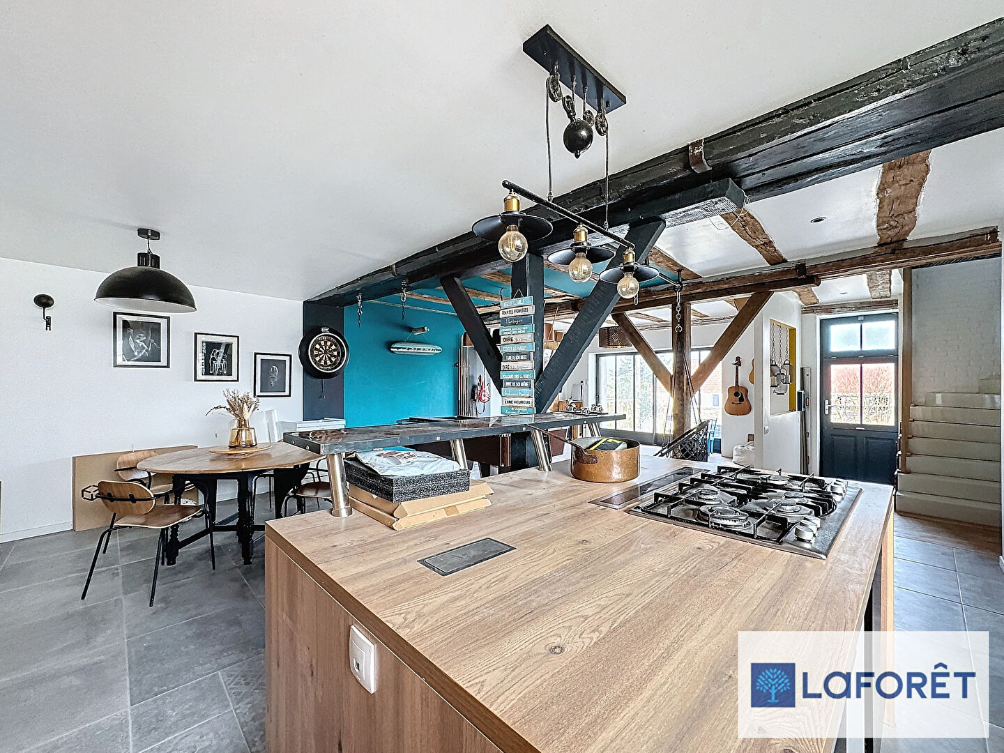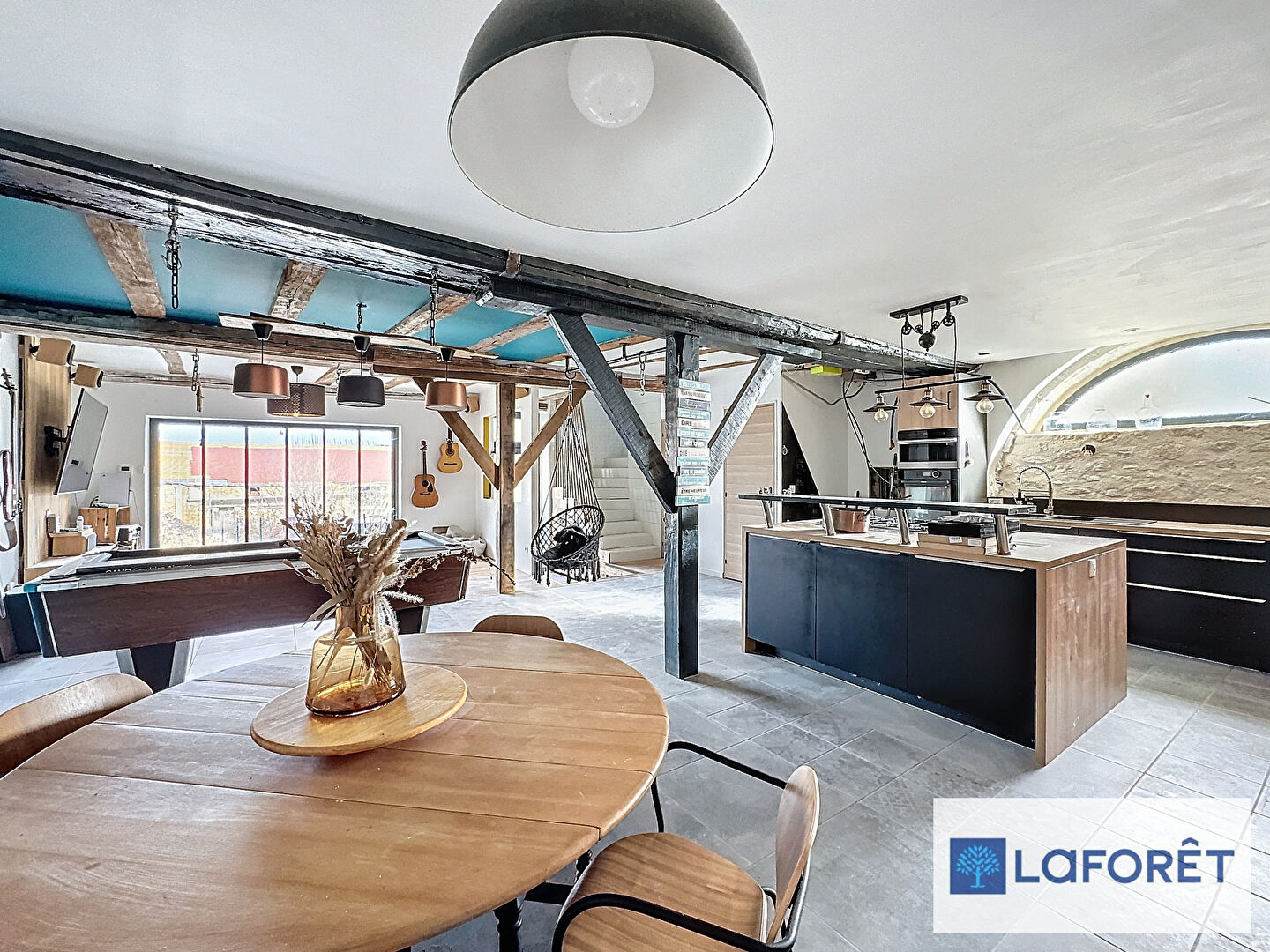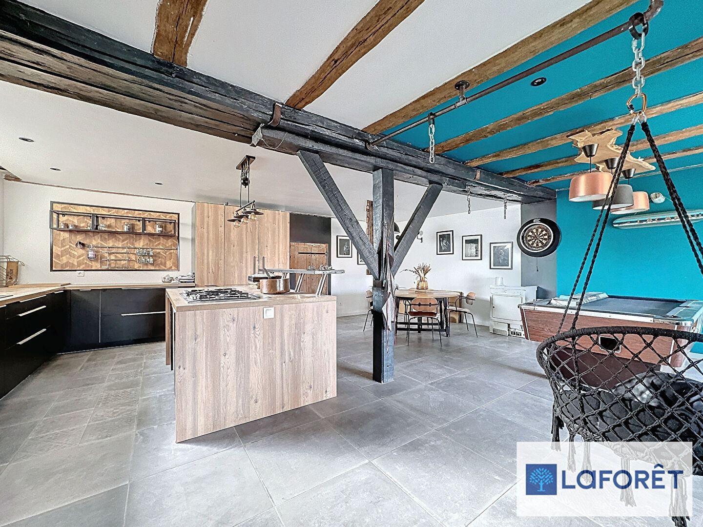 Dans un ancien corps de ferme datant du 11ème siècles, entièrement rénové, venez découvrir cette grande Maison de plus de 175m² vous offrant : entrée sur salon et salle à manger donnant accès à une terrasse, cuisine équipée, buanderie et WC.