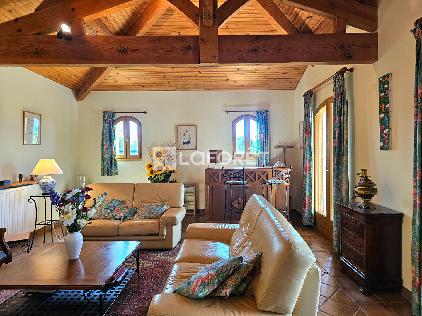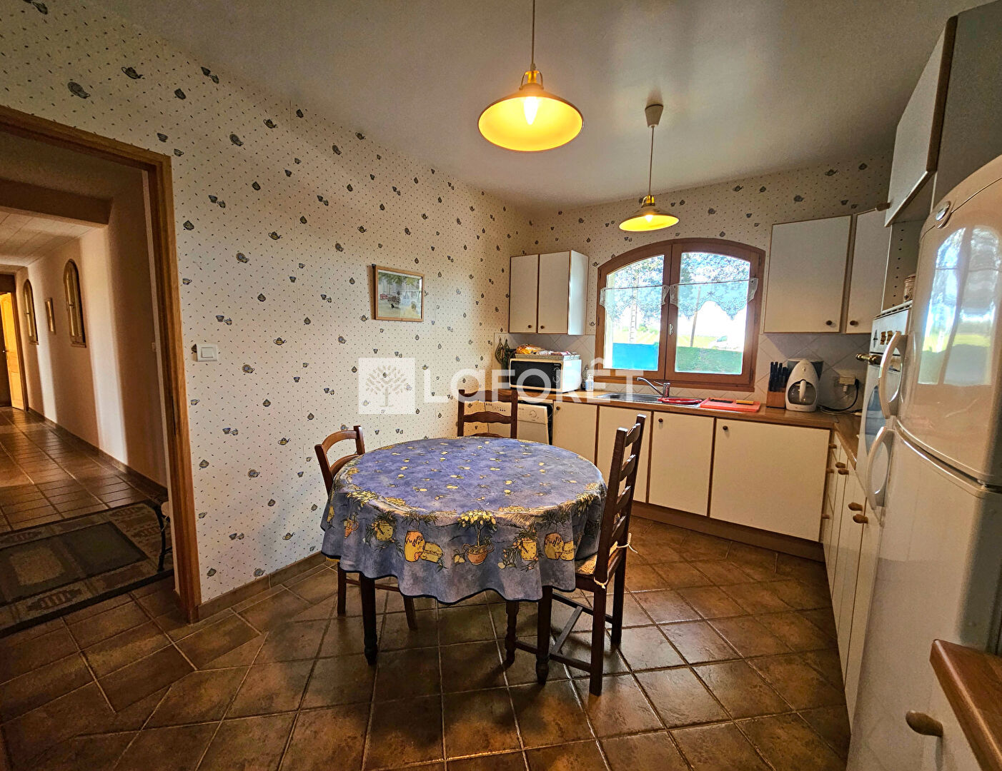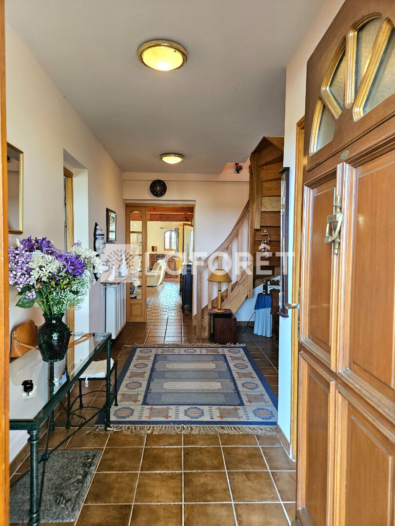 Concernant la maison, l'entrée dessert à gauche, la cuisine avec sa buanderie et un accès au garage. En face, une belle pièce de vie de presque 50m² avec charpente apparente et plusieurs ouvertures pour accéder à la terrasse. Côté nuit, un couloir vous mène à un wc, à une salle de bain avec douche et baignoire ainsi qu'à deux grandes chambres. En empruntant l'escalier, vous bénéficierez de deux chambres supplémentaires avec wc et salle d'eau pour recevoir votre famille ou vos amis !