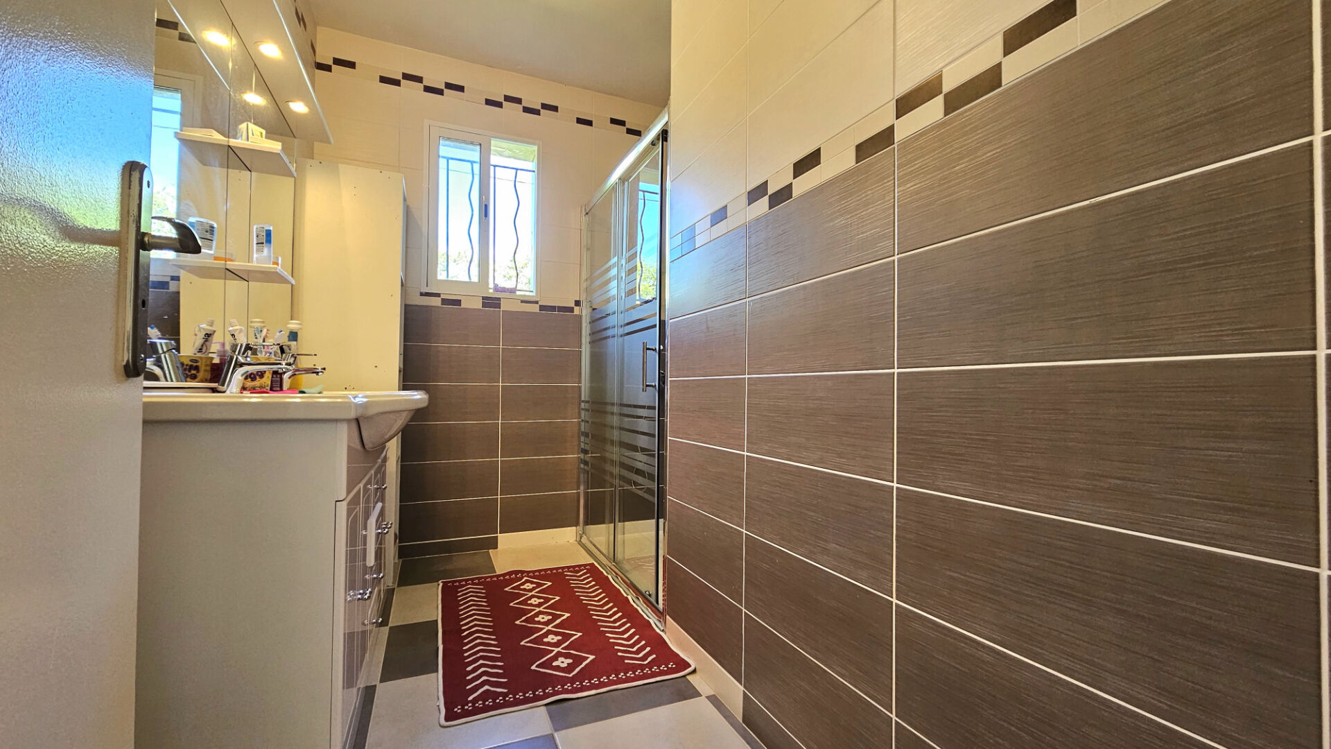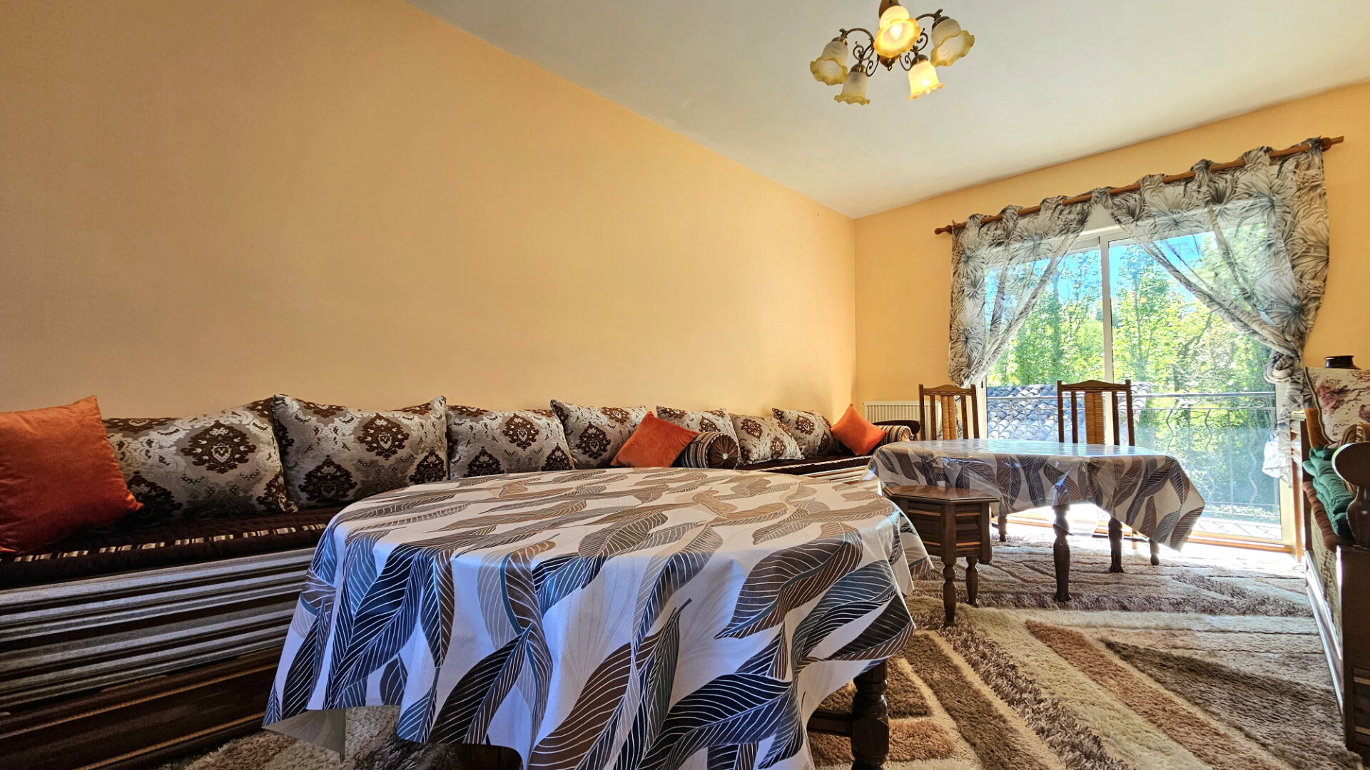 À l'étage principal, vous serez accueilli par une entrée centrale qui dessert d'un côté un salon lumineux donnant accès à un agréable balcon, et de l'autre, trois chambres (dont une qui correspond à l'ancienne cuisine), une salle d'eau récemment rénovée et des toilettes séparées. L'agencement est pratique et la luminosité est au rendez-vous dans chaque pièce.