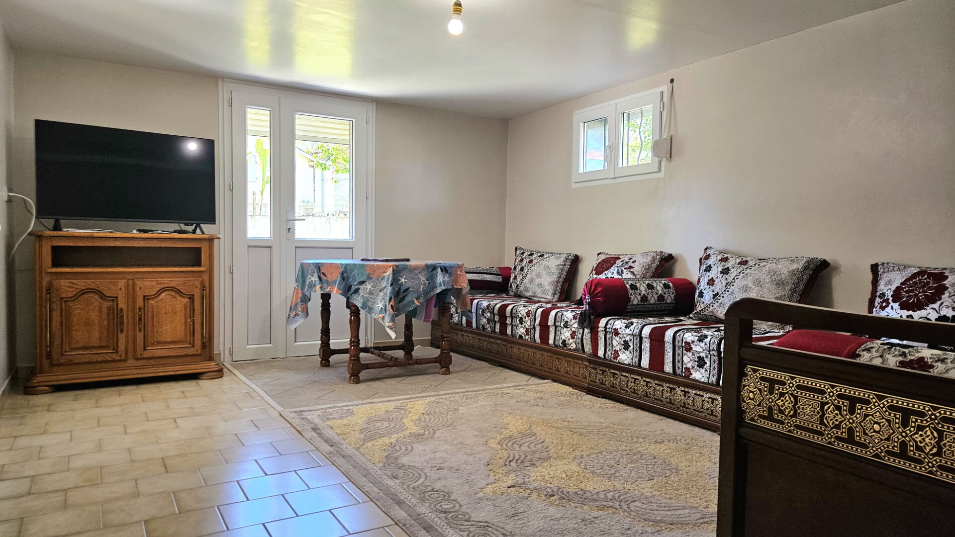 Au rez-de-jardin, accessible par une entrée indépendante, vous trouverez une cuisine équipée, un second salon ou espace de vie, une salle d'eau avec wc, une buanderie ainsi qu'un garage pouvant être transformé en chambre. Ce niveau peut facilement être aménagé en appartement indépendant, offrant ainsi une belle opportunité de location, de logement pour un proche ou de création de deux habitations séparées.
