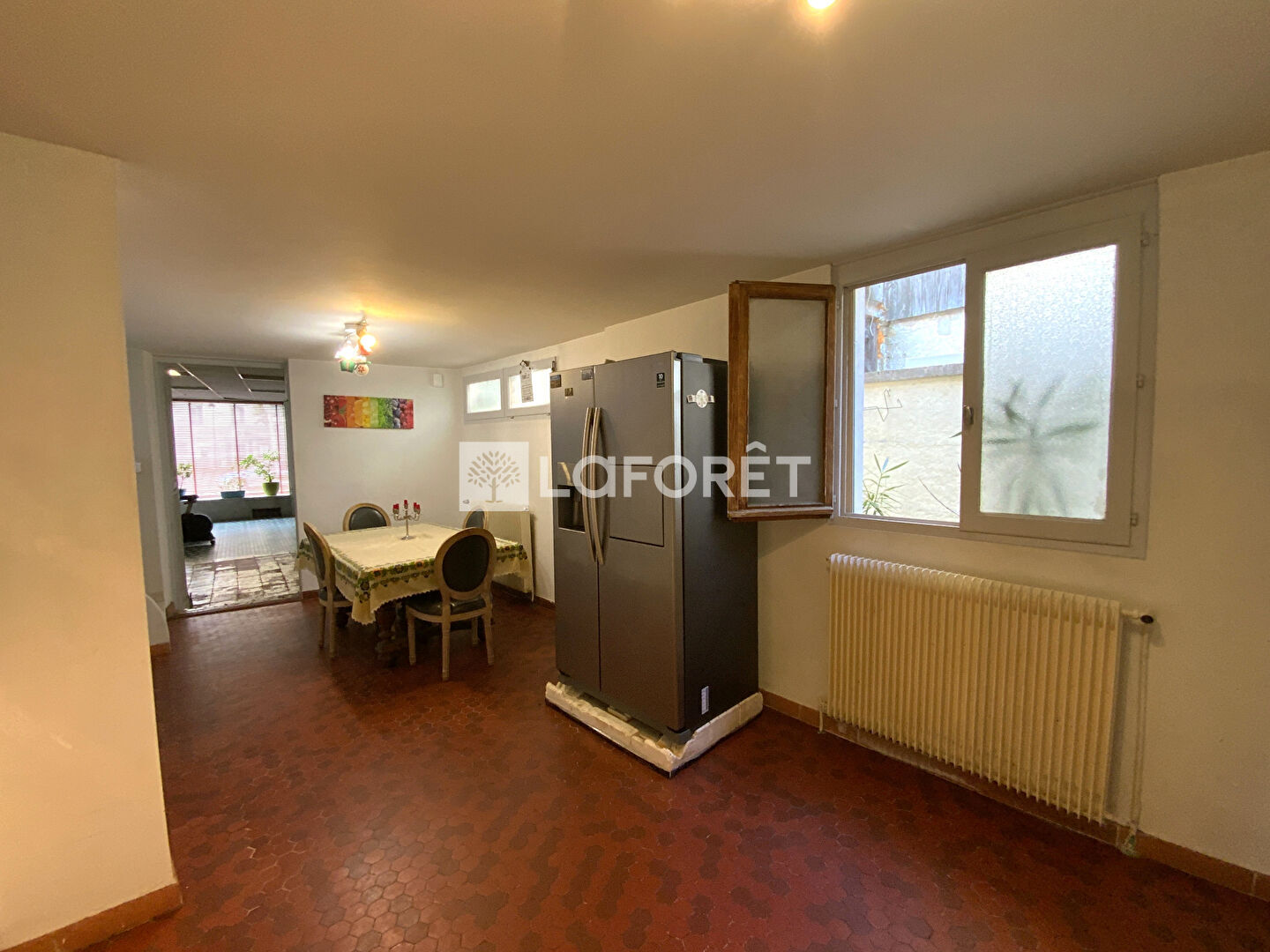 Au rez-de-chaussée, vous trouverez un local commercial offrant un potentiel pour une activité professionnelle ou pouvant être aménagé en un vaste espace de vie. Ce niveau comprend également une cuisine équipée avec un coin repas, une buanderie, un WC séparé, ainsi qu'une petite cour.
