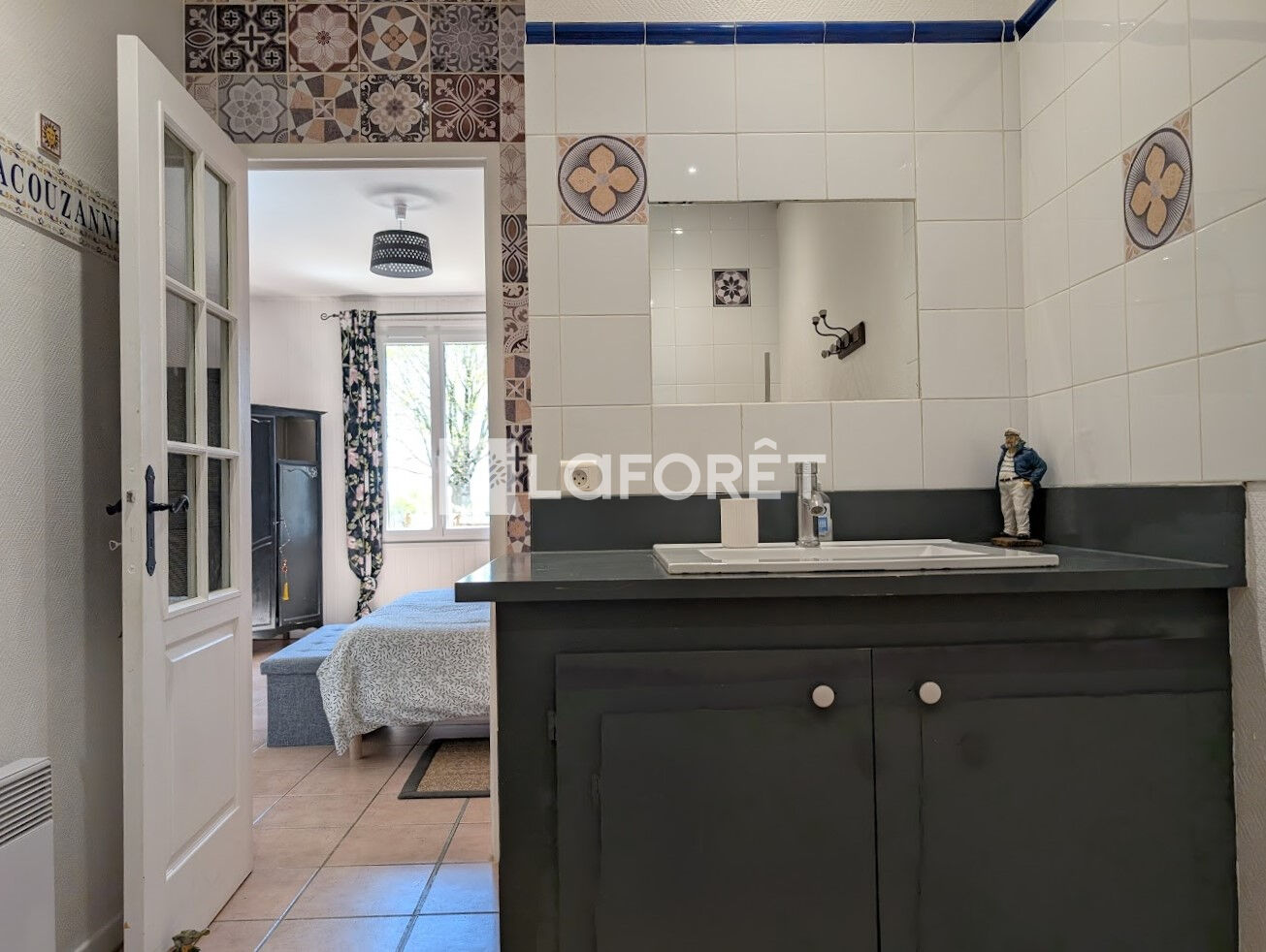 Cuisine ouverte, 1 chambre, salle d'eau et WC en rez-de-chaussée.