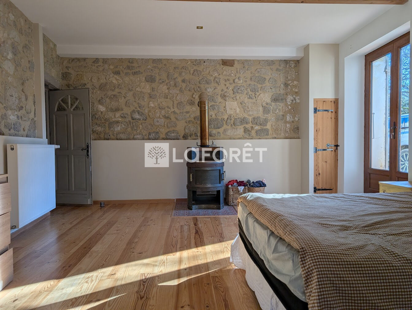 Coté atypique de la maison nous réserve une grande chambre au rez-de-chaussée, avec un escalier qui mène à une autre chambre et un bureau à l'étage.