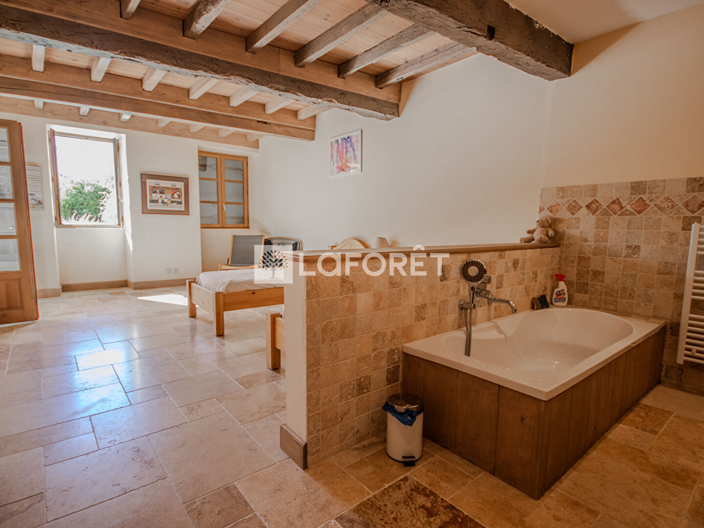 Elle se compose en rez-de-chaussée d'un immense espace de vie d'environ 80 m², d'une grande cuisine ouverte, d'une chambre avec sa salle de bains , d'une buanderie, d'une cave et d'un WC.