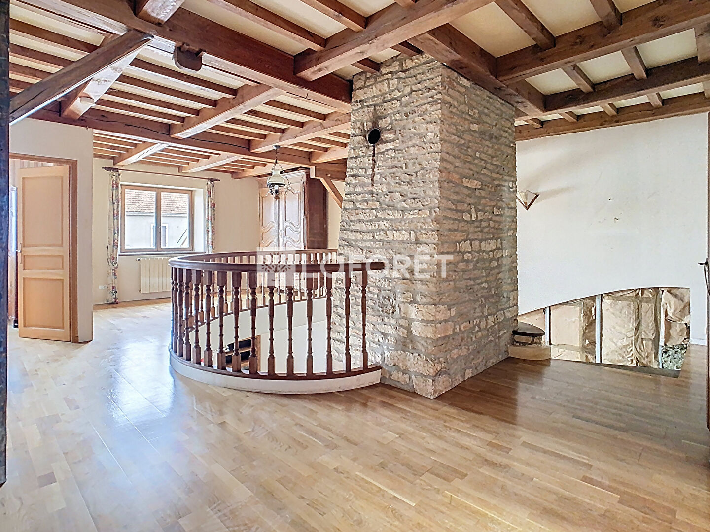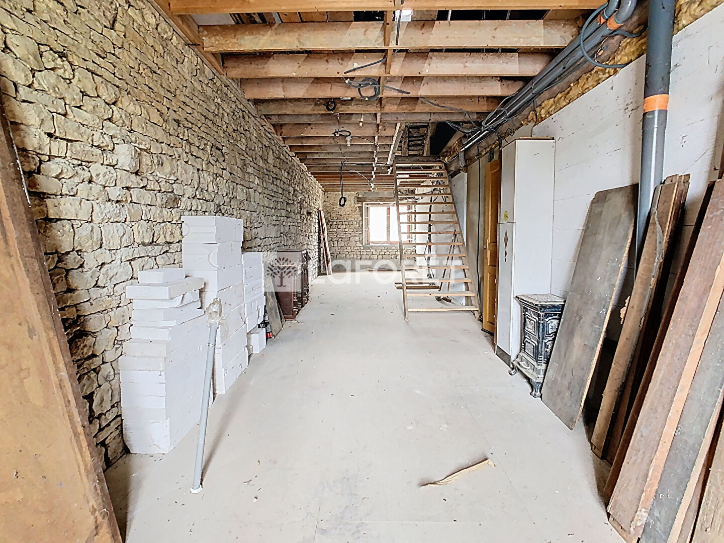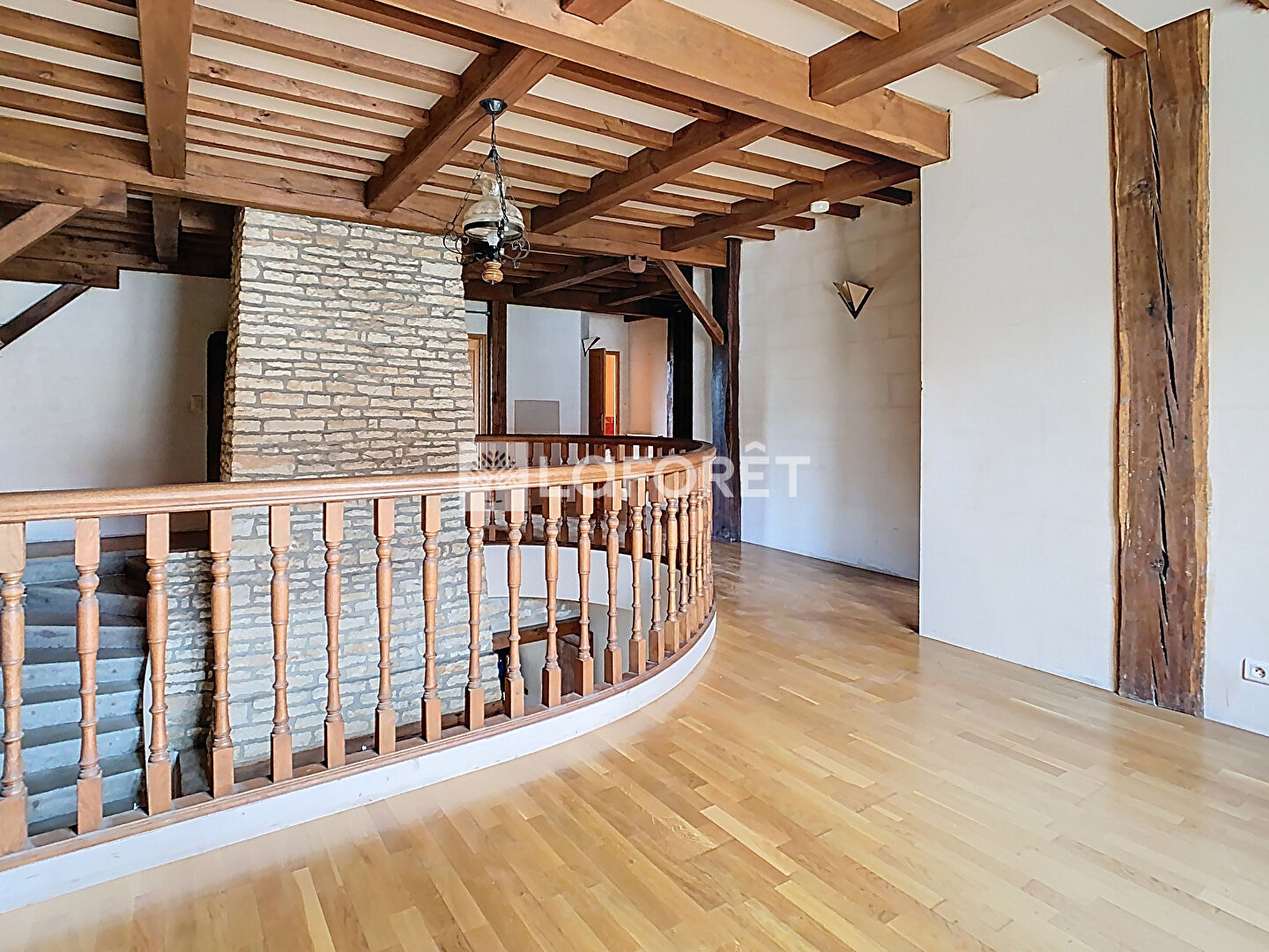 À l'étage : une grande mezzanine de 40 m² desservant 3 chambres, dont une suite parentale, une salle d'eau, un WC séparé ainsi qu'un espace grenier pouvant être aménagé et desservant un second grenier à l'étage supérieur.