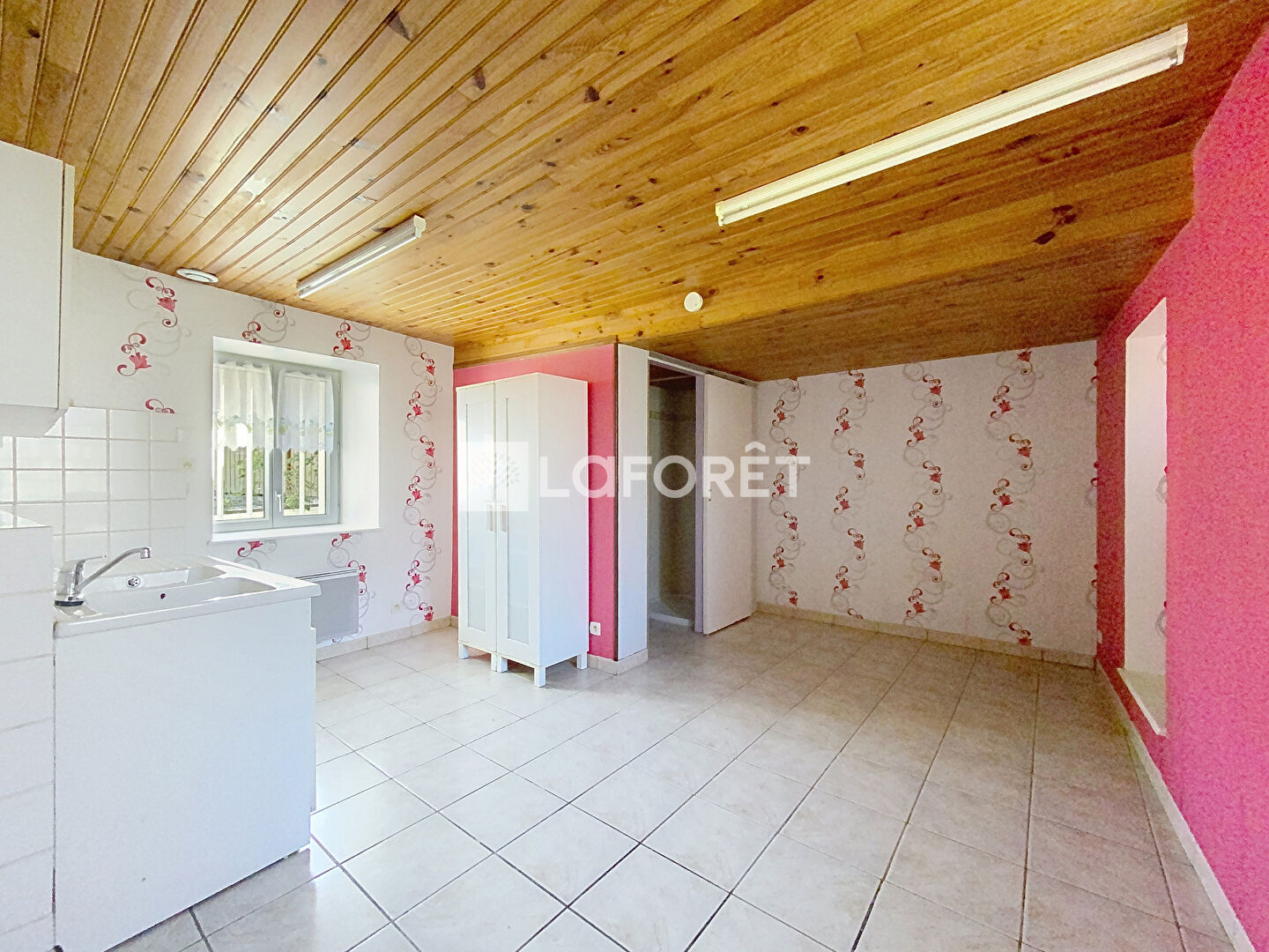 Ce bien comporte une chambre, une pièces de vie ouverte sur une cuisine, une salle d'eau avec WC, ainsi qu'une cour