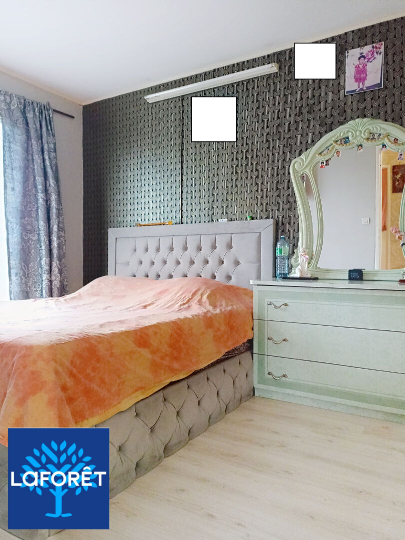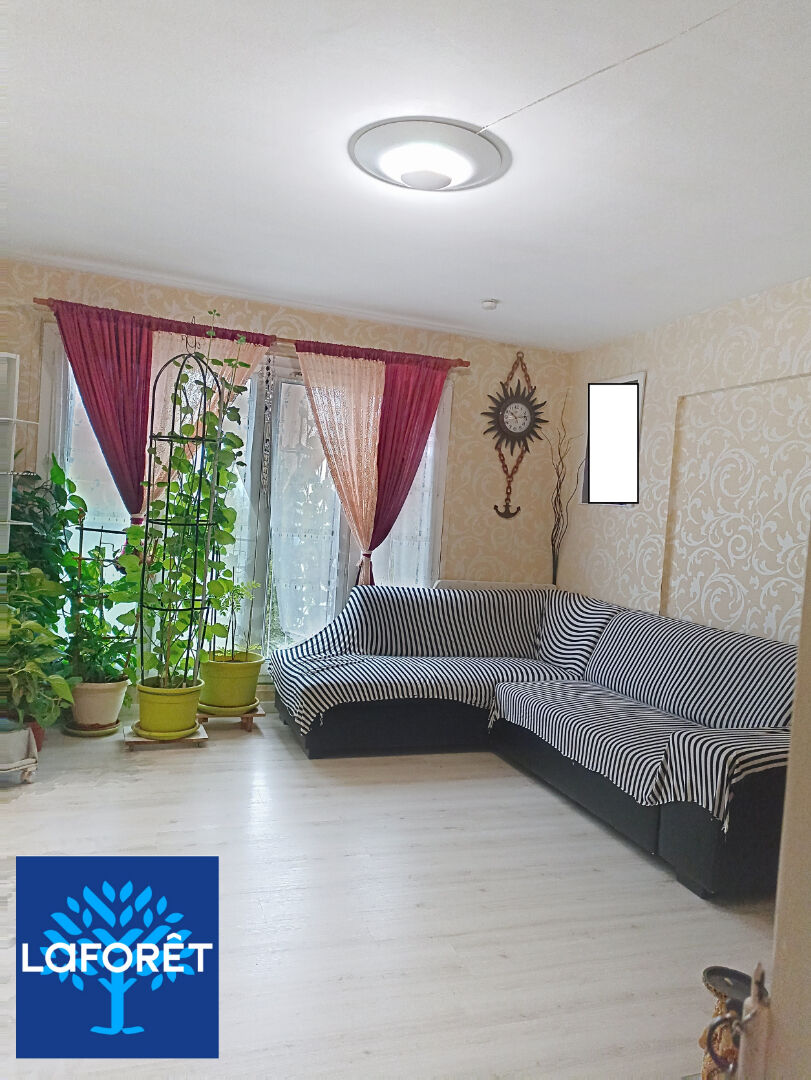 Entrée avec placard, salon , cuisine entièrement aménagée et équipée avec la possibilité d'ouvrir la cuisine sur le séjour, balcon, 3 chambres , wc, salle de bains avec buanderie et grand placard de rangements