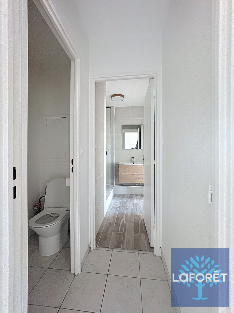 Il est constitué d'une entrée-placards, d'un séjour lumineux avec un balcon, d'une cuisine équipée, d'une chambre , d'un dégagement, d'un WC séparé et d'une salle de bains. Raccordement fibre optique possible. Vue sur la ville.