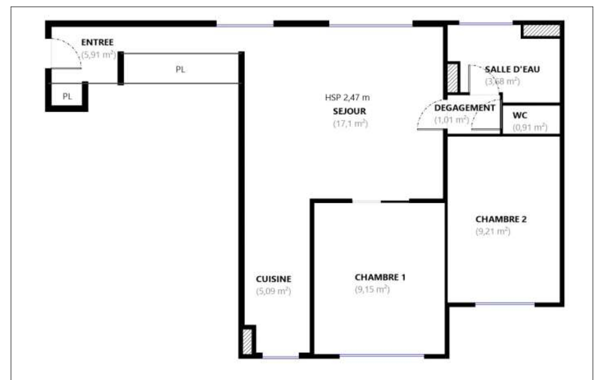 52 m² • 3 pièces • 2 chambres