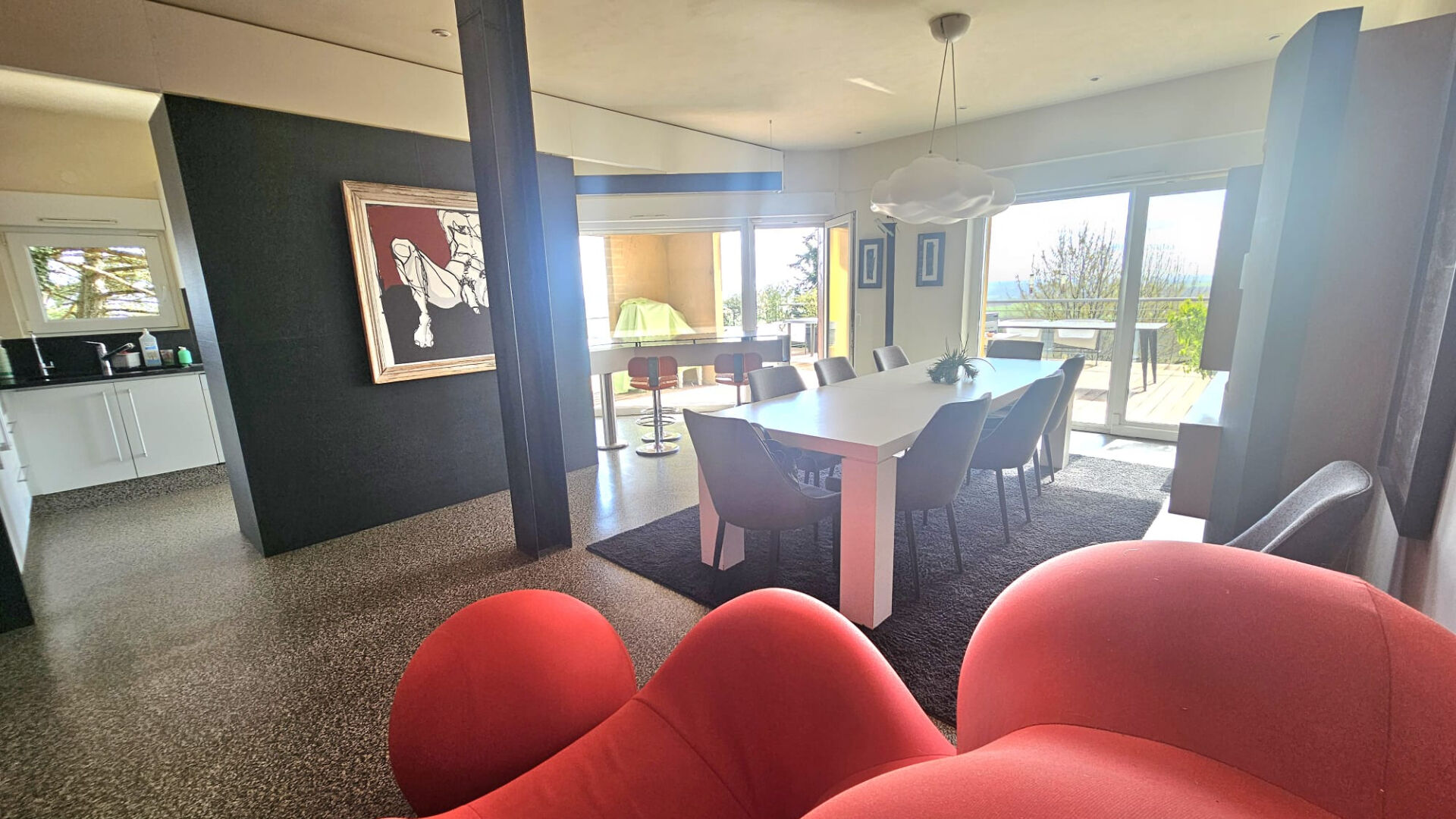 la pièce de vie accés directement a un beau jardin privatif de 272 m2 un véritable havre de paix.