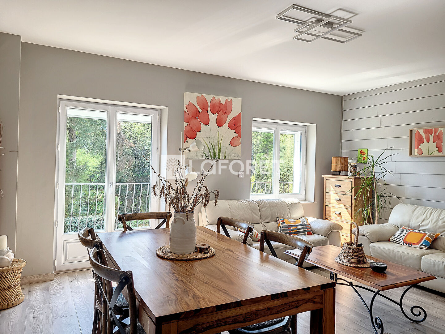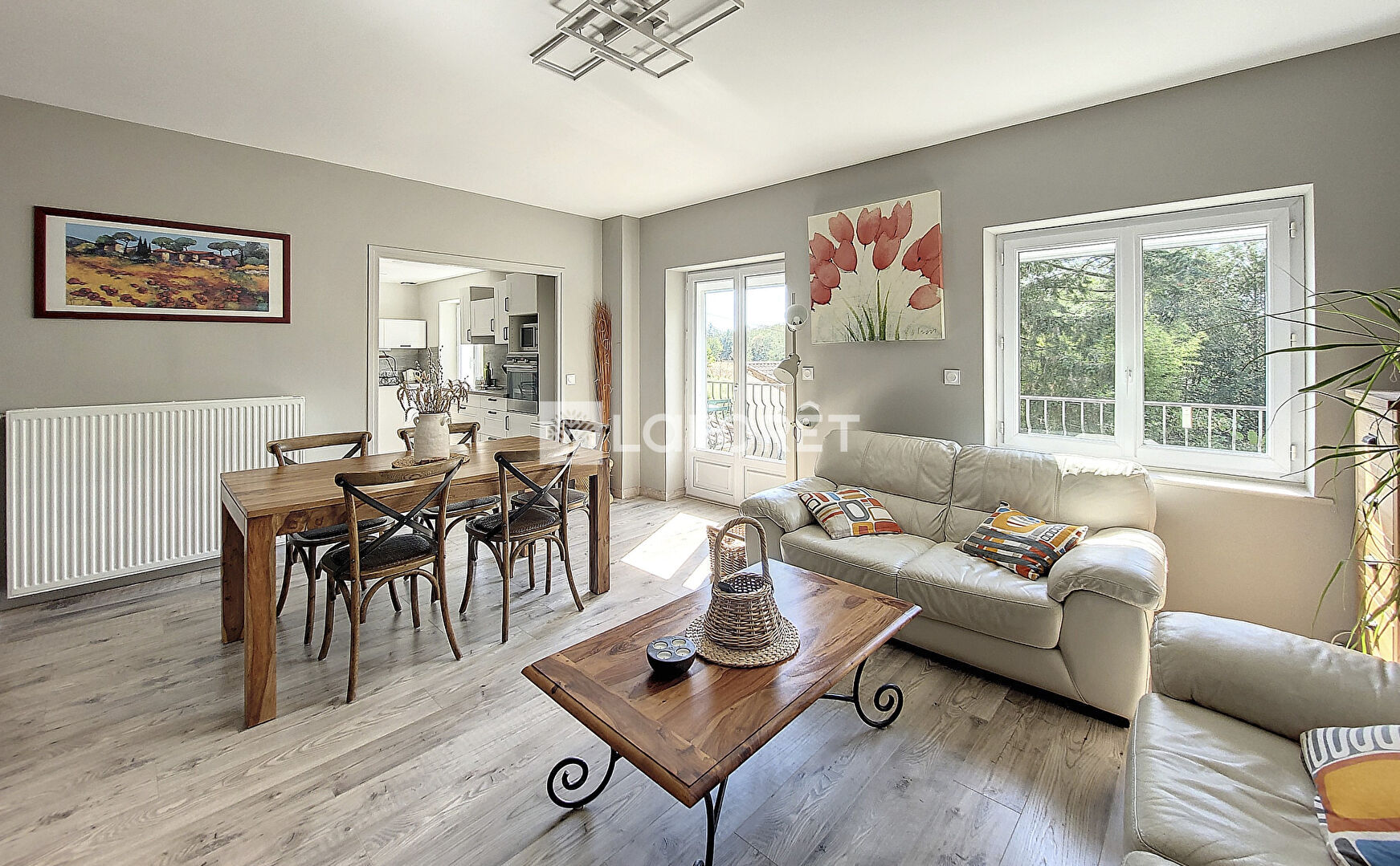 Grand séjour lumineux avec balcon