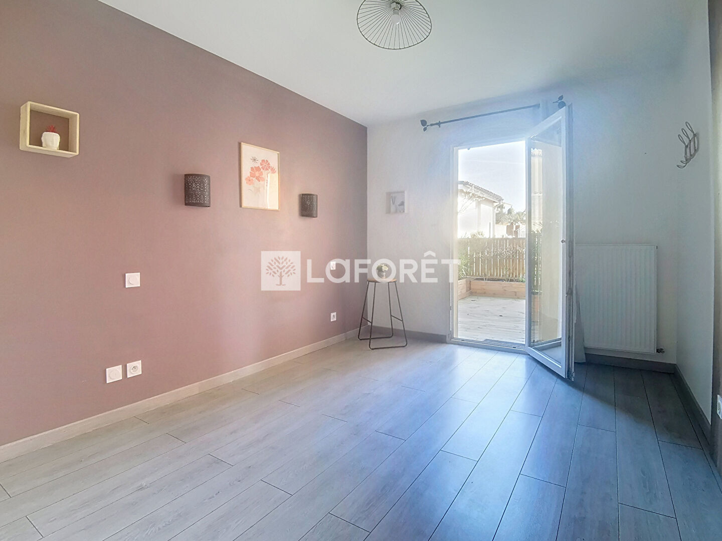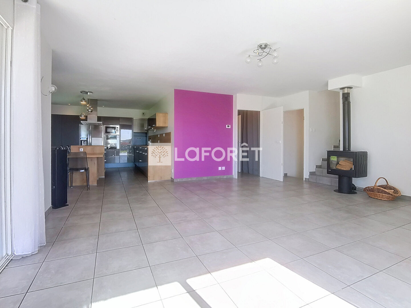 * Pièce de vie spacieuse et lumineuse de 54,80 m² avec baies vitrées orientées Sud et Ouest, ouvrant sur la terrasse couverte et le jardin.