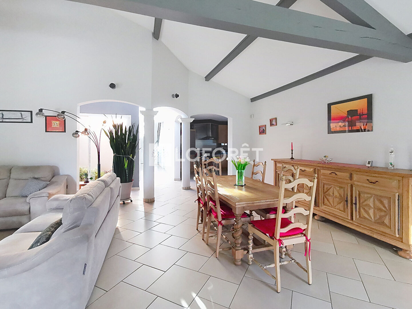 La cuisine entièrement équipée communique avec un patio baigné de lumière, véritable pièce supplémentaire à vivre.