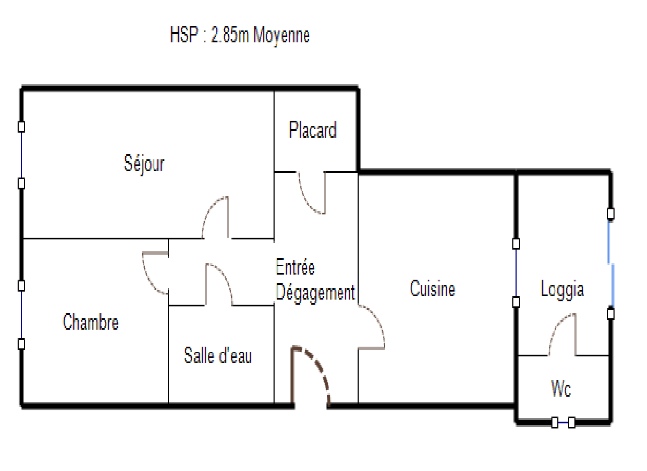 L'entrée dessert une cuisine avec loggia et WC, une salle d'eau récente avec douche, un salon, ainsi que la chambre côté sud.