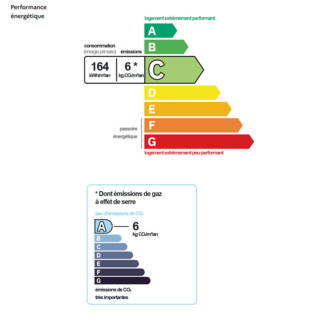 Les coûts sont estimés en fonction des caractéristiques de votre logement et pour une utilisation standard. Montant estimé des dépenses annuelles d'énergie pour un usage standard entre 650,00 € et 910,00 € indexées aux années 2021, 2022 et 2023 (abonnement compris).