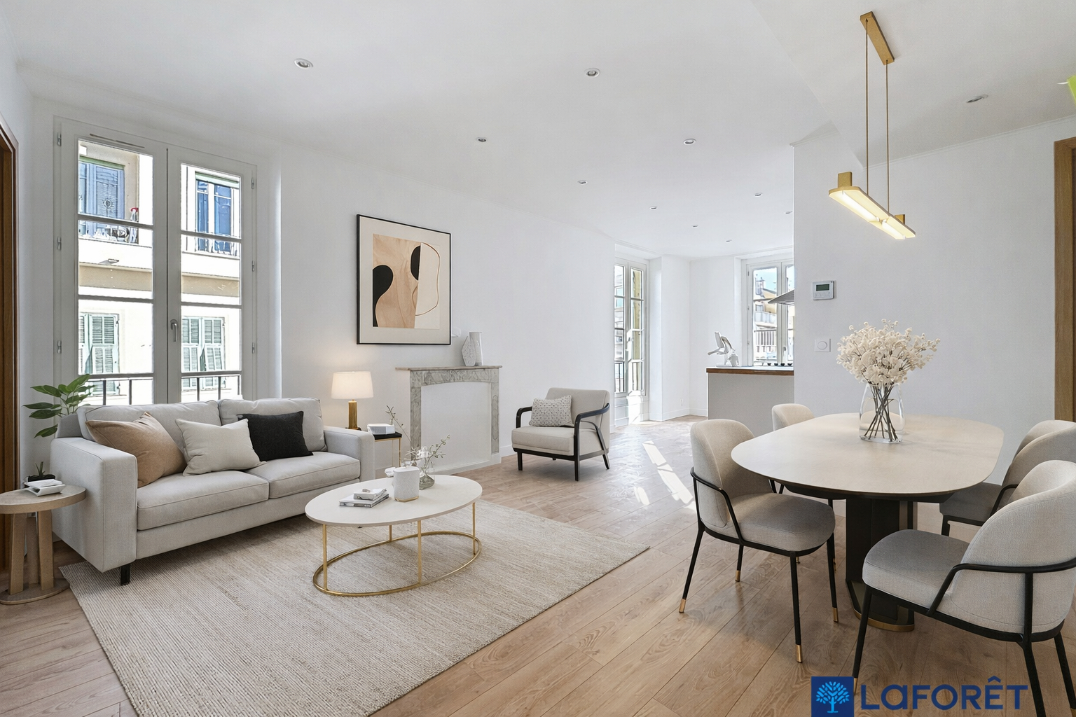 Situé au troisième étage d'un immeuble ancien niçois, cet appartement bénéficie d'une exposition sud-est offrant une belle luminosité. Il se compose d'un vaste séjour avec cuisine américaine, de deux chambres et d'un balcon.