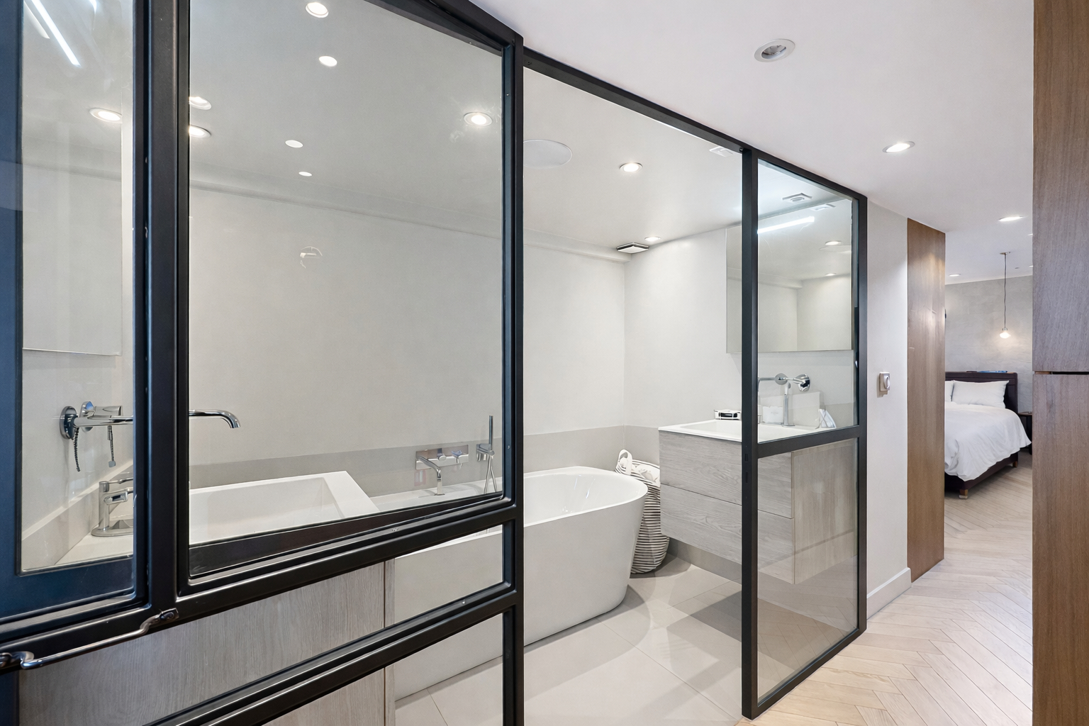 L'appartement se distingue par ses volumes généreux et sa hauteur sous plafond, ainsi que par la qualité des matériaux utilisés dans l'ensemble de la rénovation.
