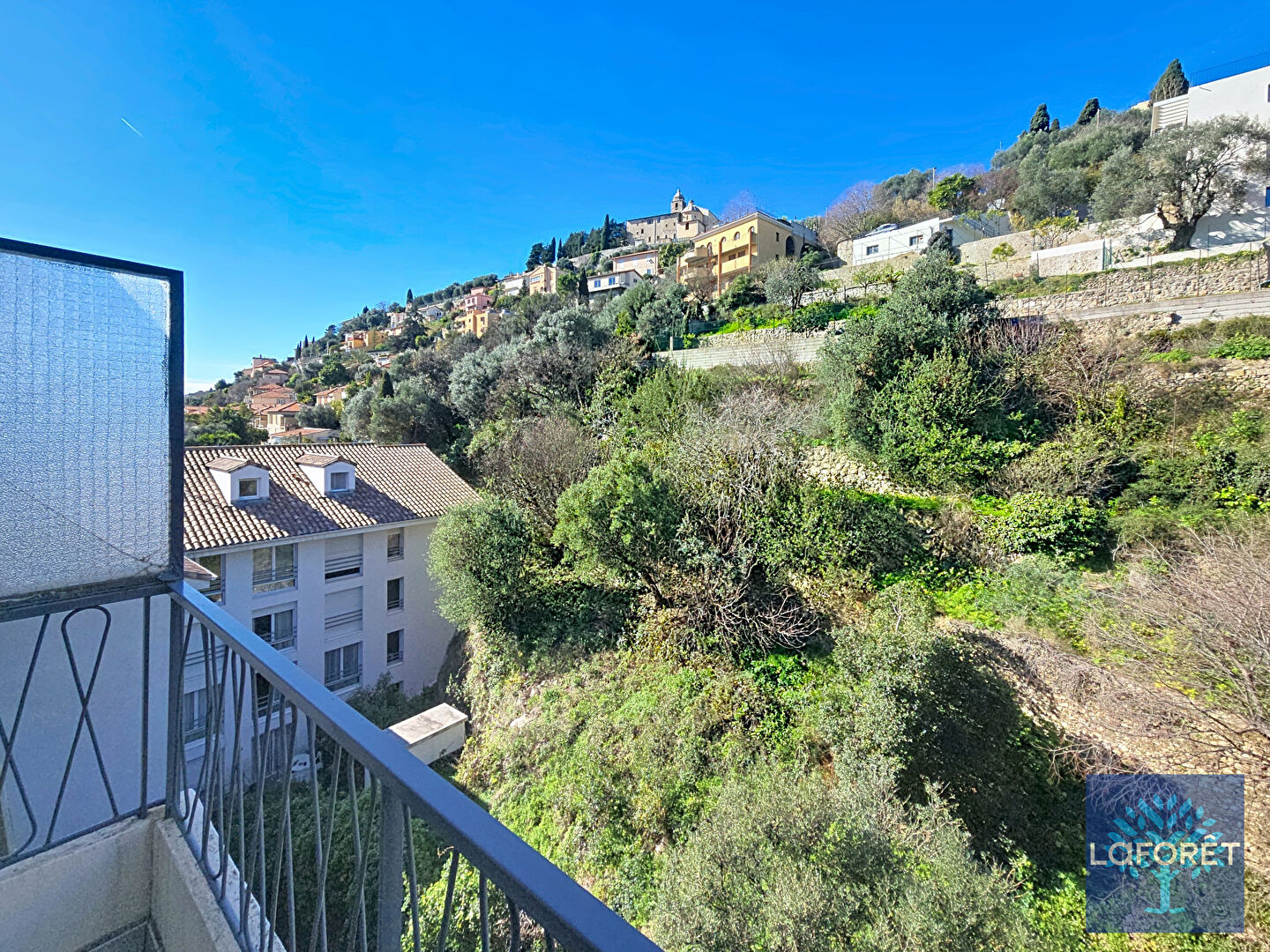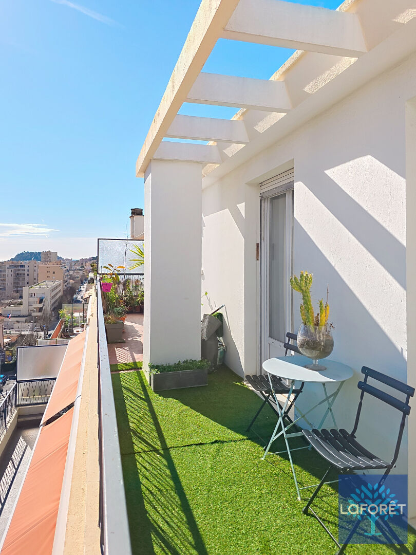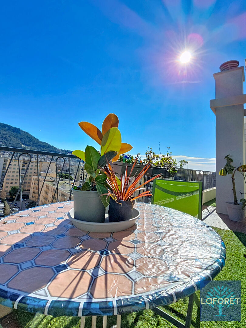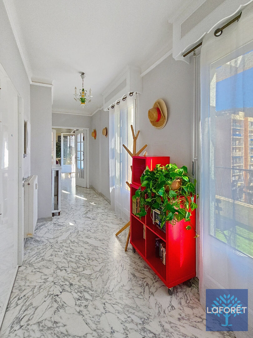 D'un côté, un lumineux séjour ouvrant sur une superbe terrasse de plus de 30 m² exposée sud-est avec vue dégagée sur les collines et un aperçu mer et colline du château. La cuisine aménagée, quant à elle, profite d'un balcon et est accompagnée d'une arrière-cuisine avec de nombreux rangements. Lave et mains et toilettes.