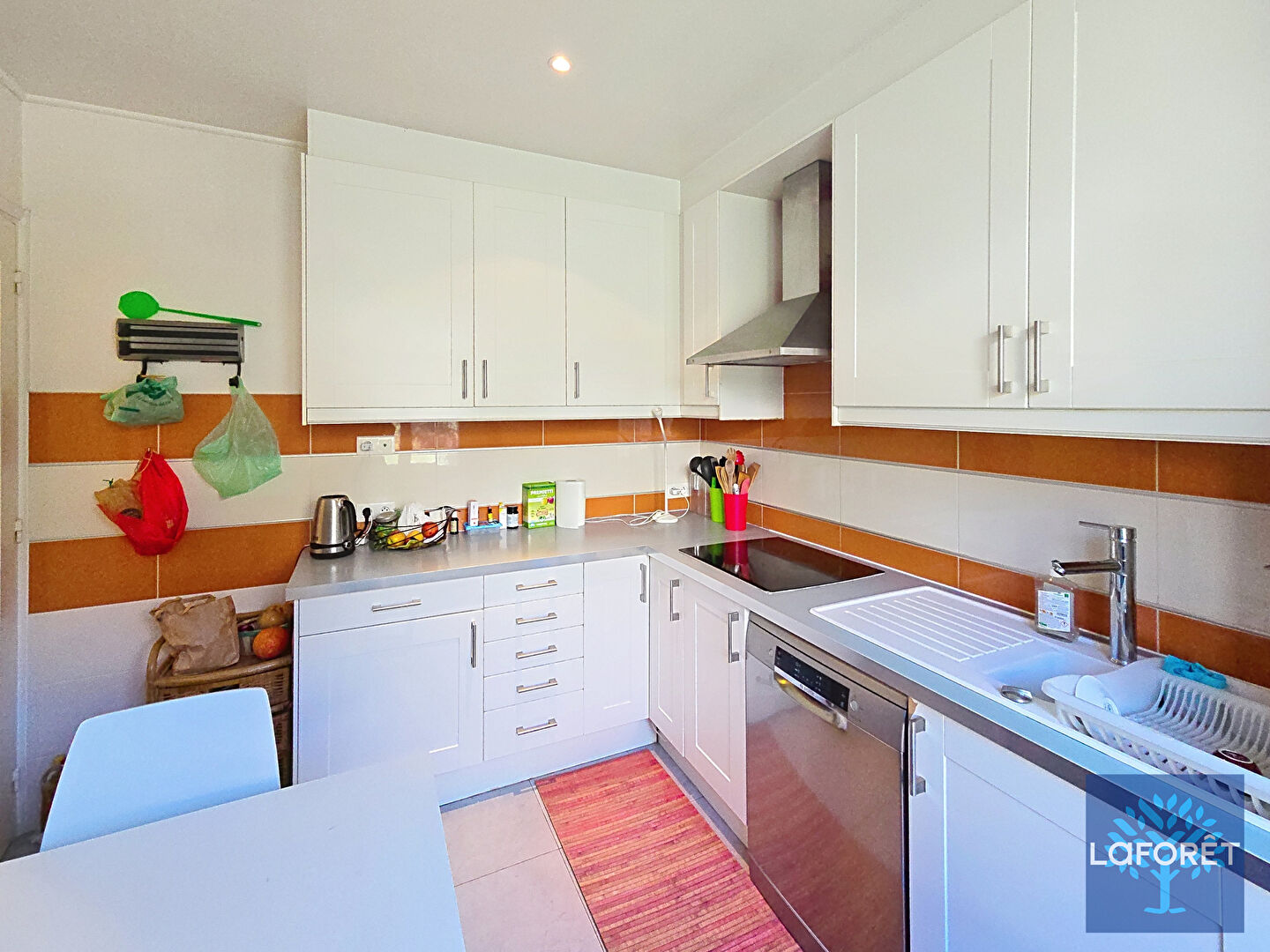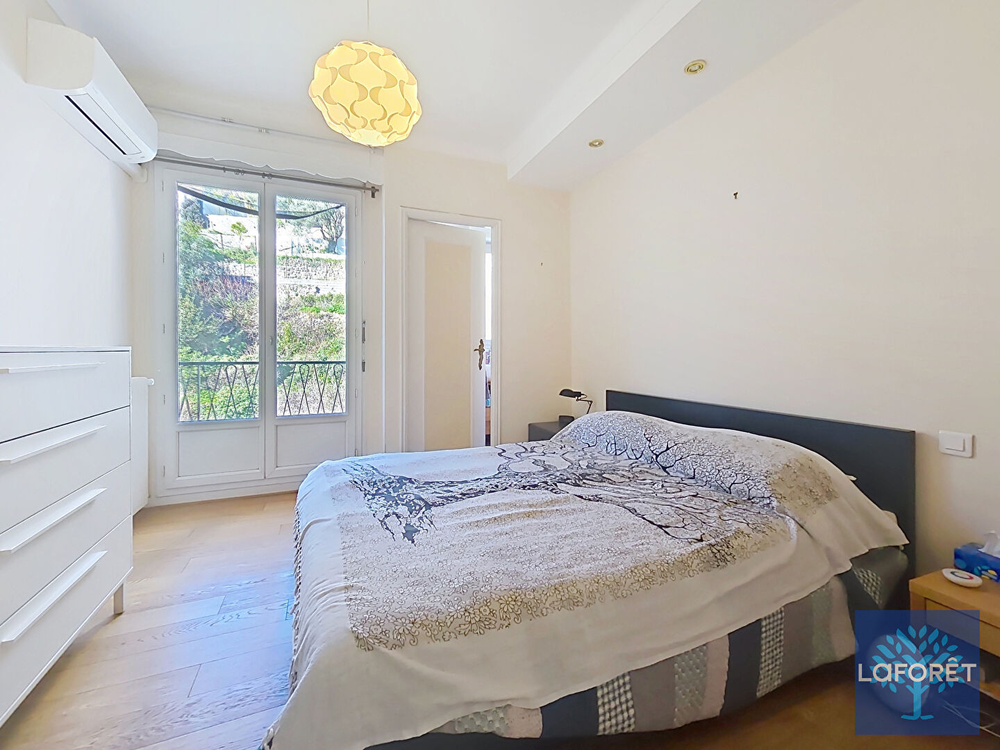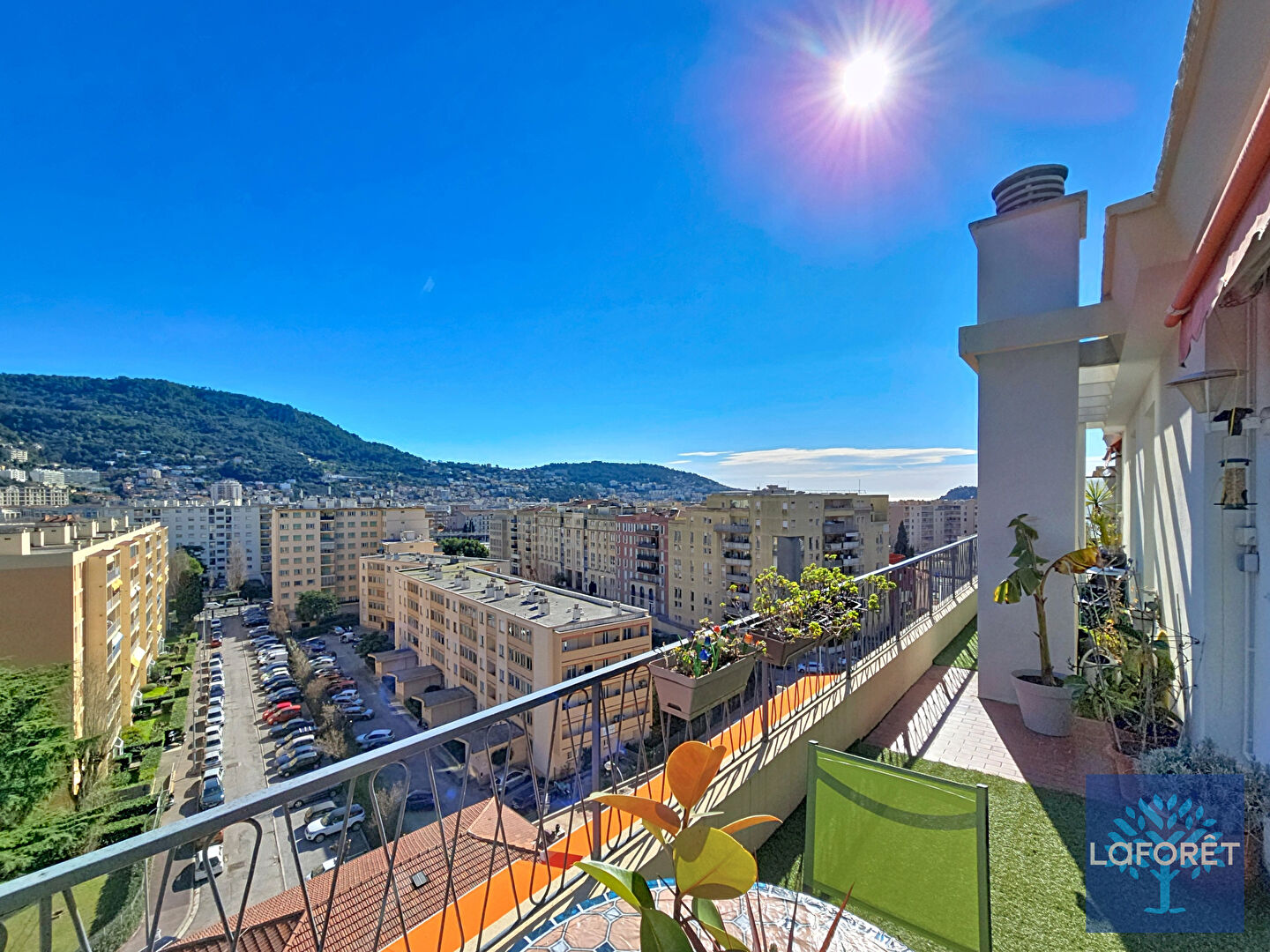 D'un côté, un lumineux séjour ouvrant sur une superbe terrasse de plus de 30 m² exposée sud-est avec vue dégagée sur les collines et un aperçu mer et colline du château. La cuisine aménagée, quant à elle, profite d'un balcon et est accompagnée d'une arrière-cuisine avec de nombreux rangements. Lave et mains et toilettes.