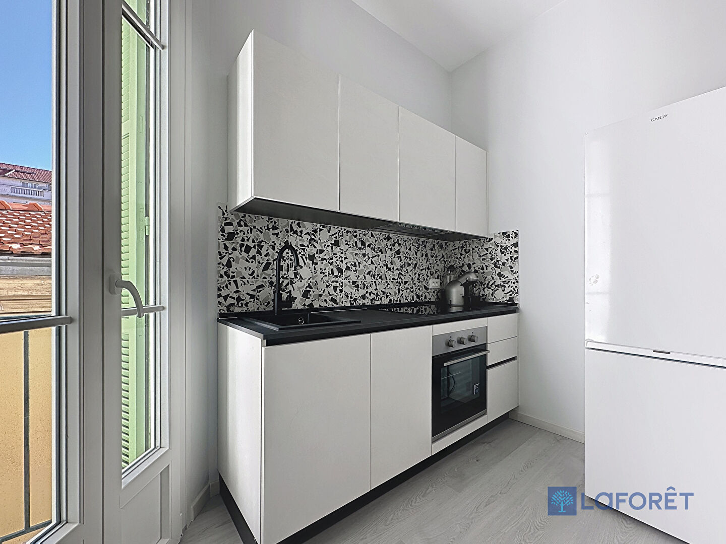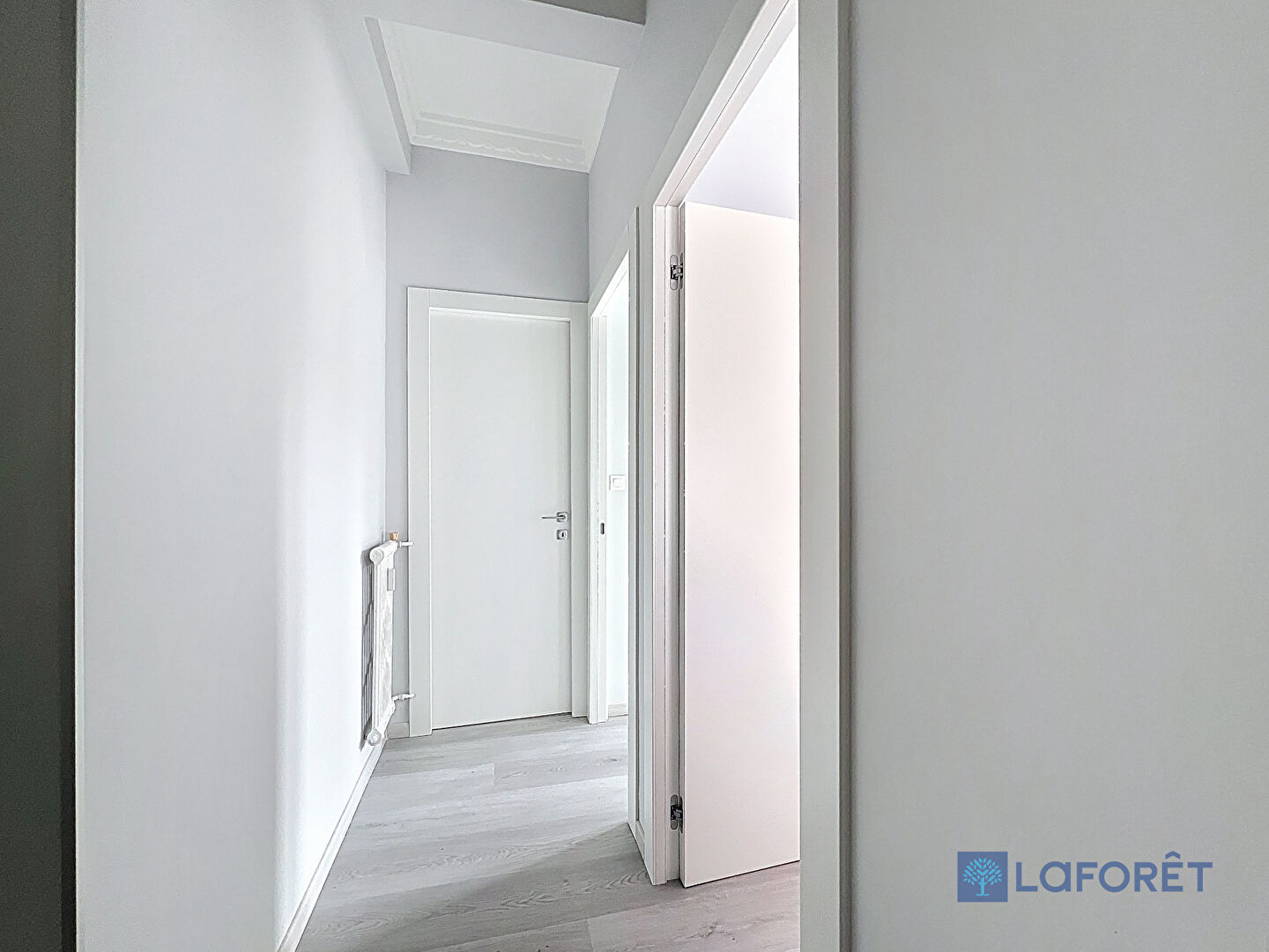 Entièrement rénové avec sobriété et goût, l'appartement propose des prestations de qualité et est prêt à être investi. Il se compose d'une entrée desservant trois pièces aux volumes équivalents, toutes prolongées par un espace extérieur, d'une cuisine fonctionnelle entièrement équipée avec balconnet, ainsi que de WC séparés et un placard à balais.