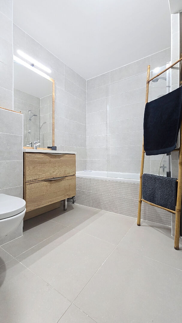 Il se compose d'un séjour lumineux avec cuisine américaine équipée ouvrant sur une terrasse prolongée par un petit jardin, d'une chambre donnant également sur le jardin, ainsi que d'une salle de bains avec WC.