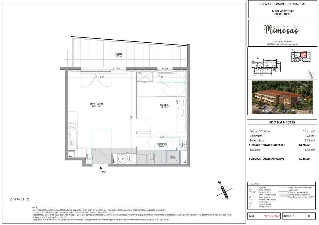 Dans la résidence neuve et contemporaine Le Domaine des Mimosas, découvrez ce T2 de 43,70 m². Il dispose d'un séjour/cuisine spacieux et lumineux, d'une chambre confortable, d'une salle d'eau moderne et d'une belle terrasse de 11,75 m². Situé dans un environnement calme et verdoyant, ce bien est idéal pour un projet de vie ou un investissement.