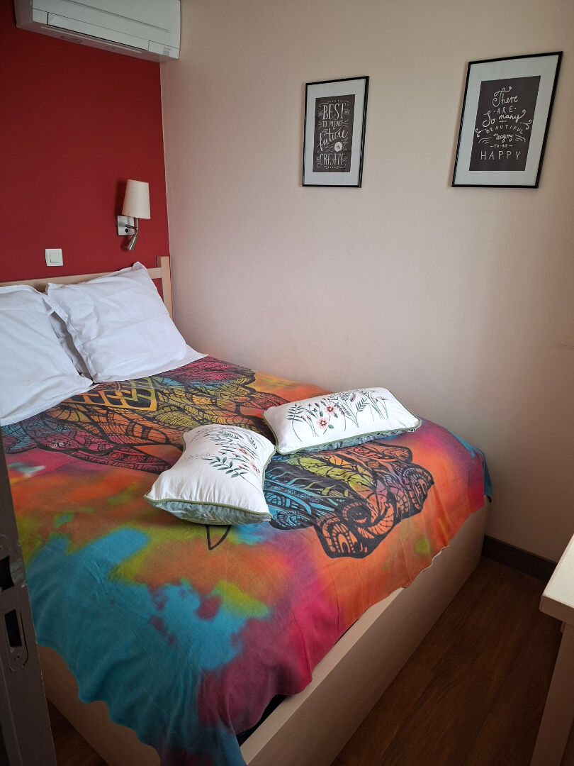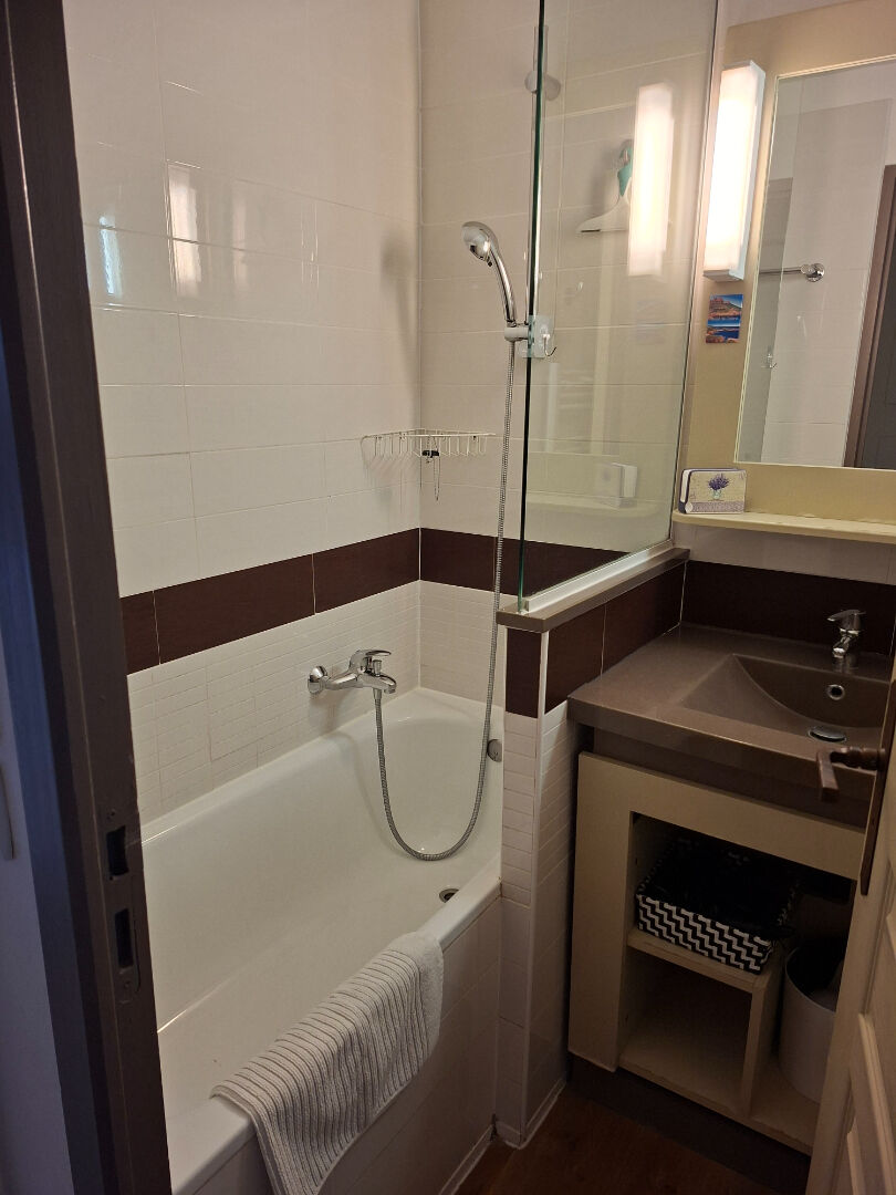 Nous avons une chambre coté Estérel ,une salle de bain , toilette séparé ,une belle pièce de vie avec son coin cuisine .