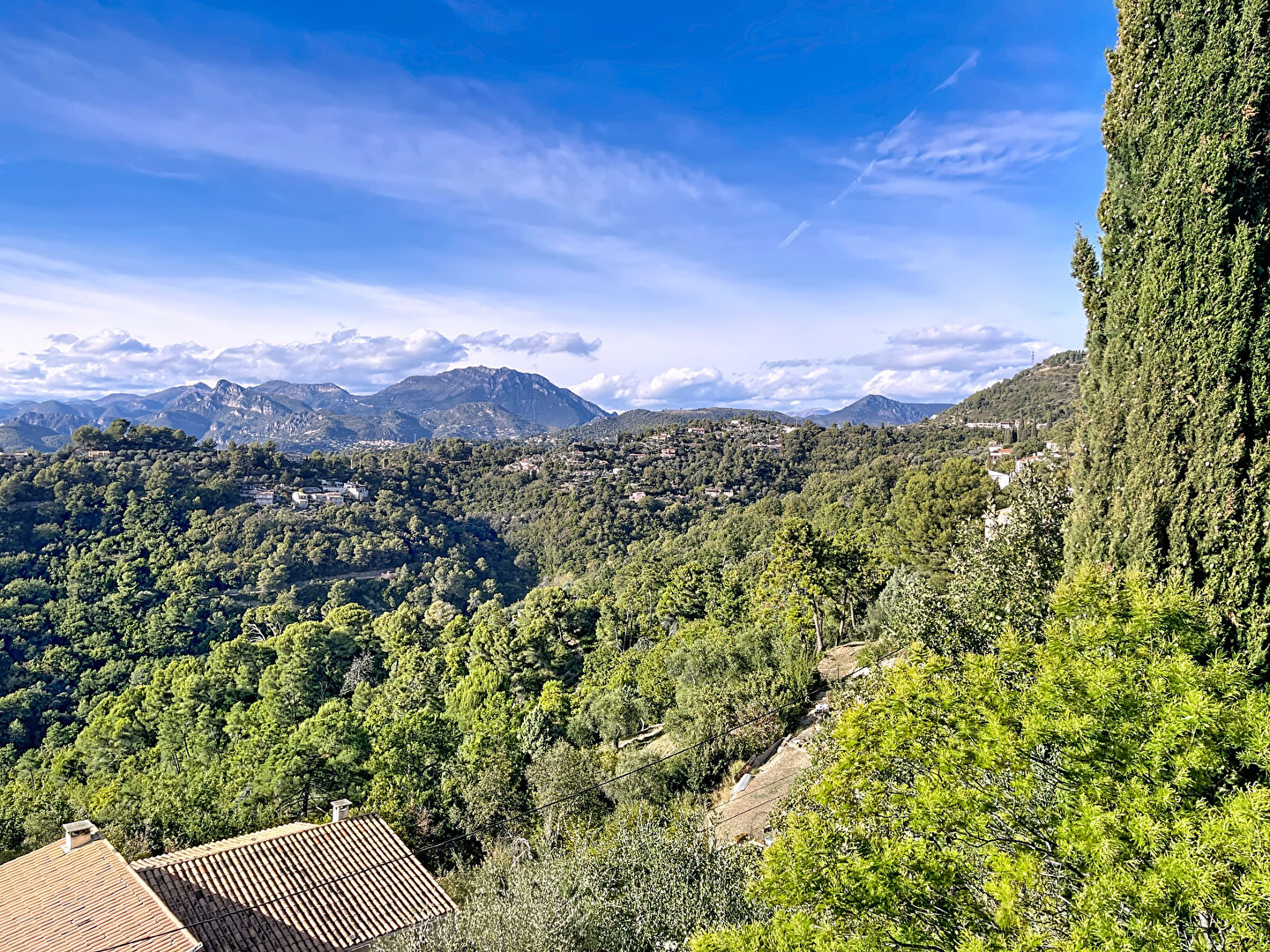 Édifiée sur un terrain de 1 407 m², planté de 17 oliviers, elle profite d'un panorama imprenable sur les montagnes et d'une exposition Sud-Ouest, baignée de soleil jusqu'au soir. Sa belle hauteur sous plafond de plus de 3 mètres, sa cheminée d'époque et son architecture authentique confèrent à l'ensemble un charme indéniable.