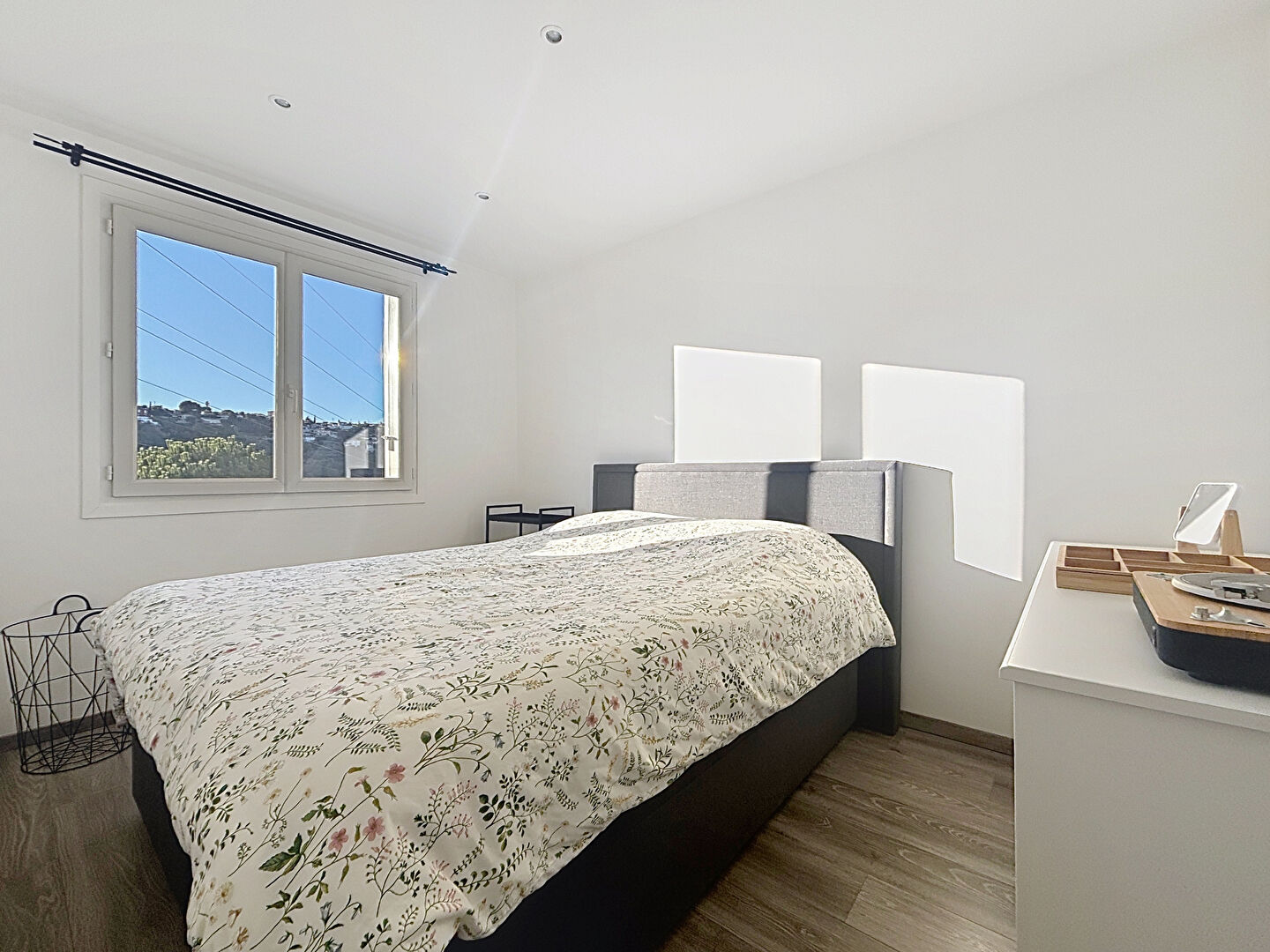 L'appartement est baigné de soleil, la terrasse plein ciel permet de profiter de la vue mer et jardin.